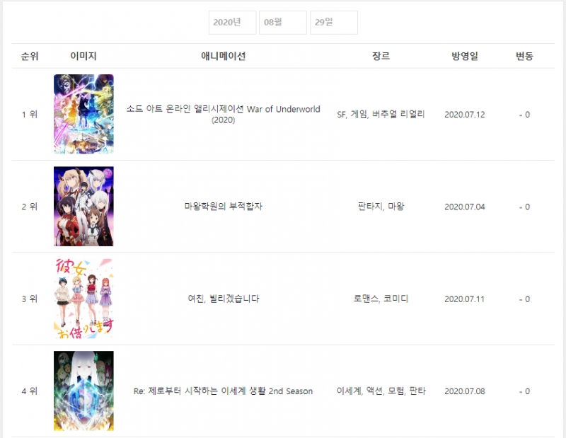 * 2020년 8월 29일 - 소드 아트 온라인 앨리시제이션 War of Underworld (2020) (2020.07.12) [2주] *