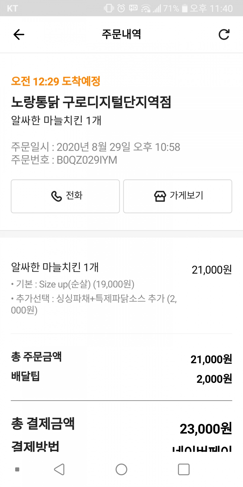 치킨을 시켰는데 내일오게생겼네요.