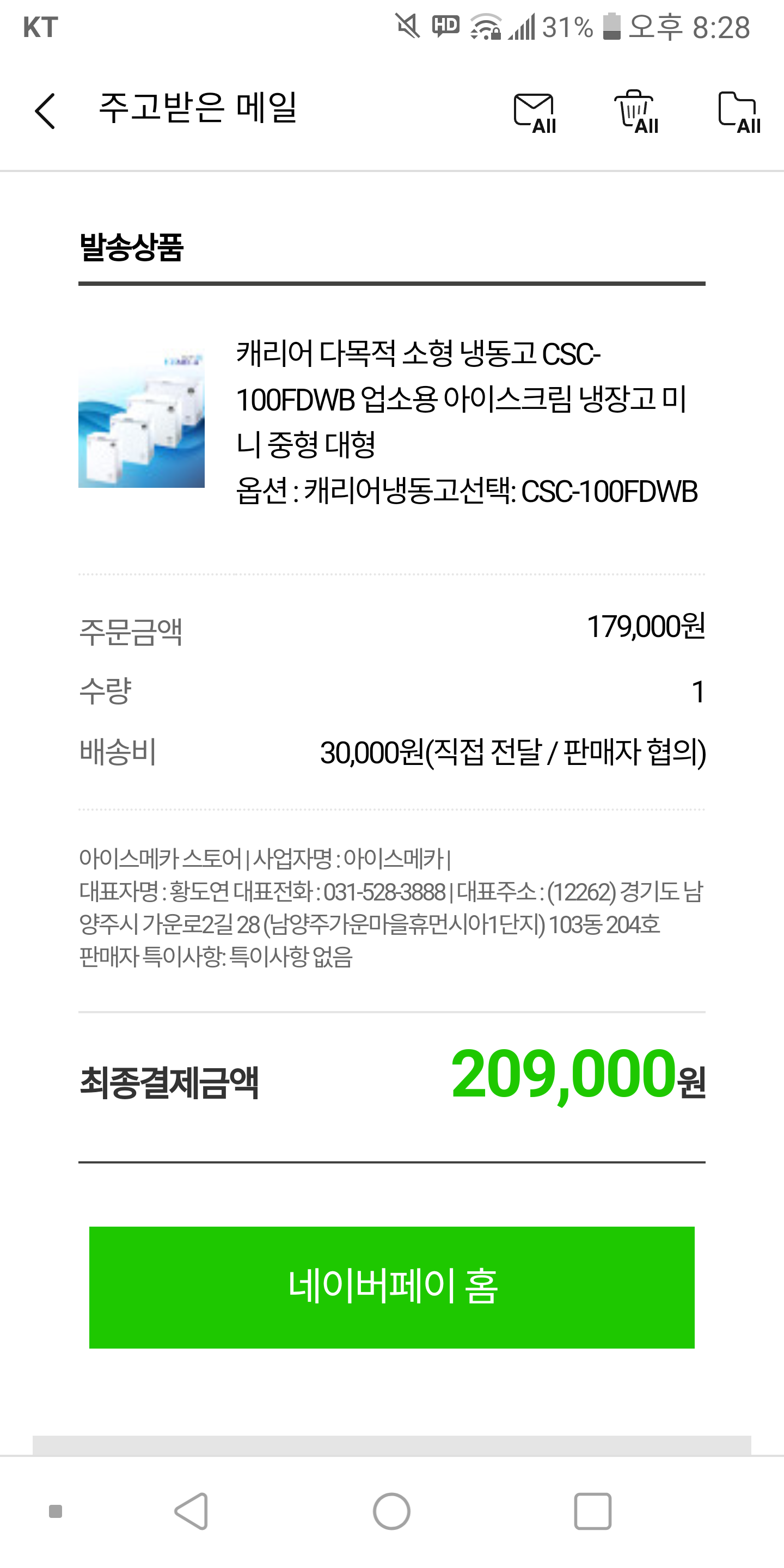 냉동고를 주문했습니다