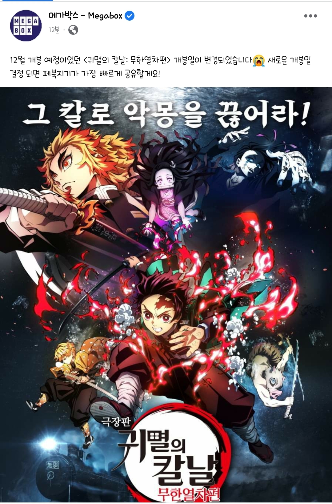TMTonejae 귀칼 무한열차편 개봉이 2021년 1월 가능성이 높네요 [애니] 작성일시 : 2020. 12. 08 (10:54) 조회 : 2,046 / 댓글 : 3 방금 메가박스 페이스북을 통해개봉일 변경이 결정되어서확정되면 바로 알려준다고 하네요 지금 박보검, 공유 주연의 영화도내년으로 연기되었고일부 영화는 제작비라도 챙길려고넷플릭스 단독 서비스하고 코난도 2주 연기되었는데아예 내년 1월이나 2월 발렌타이데이 때해야할 듯 합니다 그리고 극장판 기븐도조기 상영종료가 결정되어서이젠 뭐 덤덤하게 받아들이네요 법규 코로나땜에 이 표정이군요모두 안전한 연말 보냅시다저도 잡힌 일정도 다 비대면, 온라인이고취소되거나 내년 1월로 연기되었네요 ㅠㅠ 7추천 글쓰기스크랩 신고