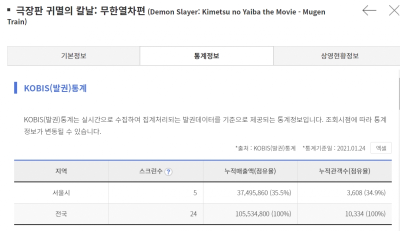 JINI 순항을 시작했군요. [애니] 작성일시 : 2021. 01. 25 (22:14) 조회 : 1,650 / 댓글 : 0 귀멸의 칼날 극장판이 정식 개봉은 1/27이지만 선개봉으로 벌써 관객 수가 집계가 시작되었습니다. 근데 벌써 만명을 넘어섰네요. 얼마나 많은 관객이 찾아올지 궁금합니다. 6추천 글쓰기스크랩 신고