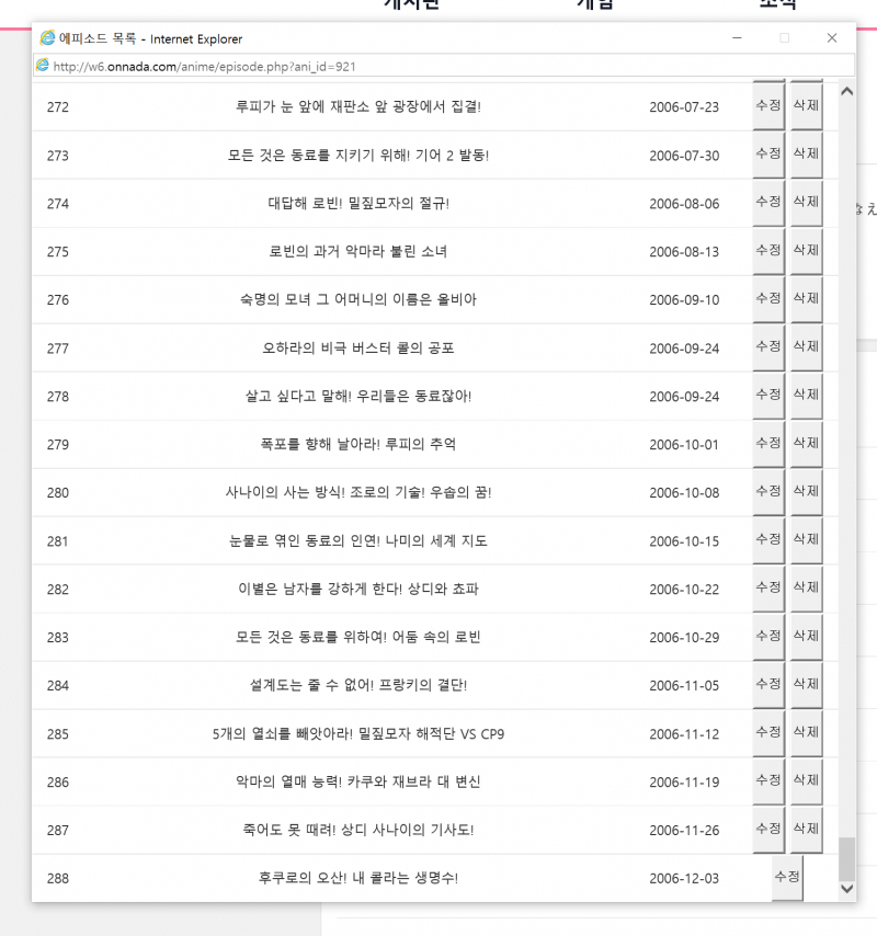 ZEN 에피소드 등록시 오류... [애니] 작성일시 : 2021. 04. 12 (08:11) 조회 : 2,290 / 댓글 : 0 원피스나 명탐정 코난 같은 장편 애니로 따져서 등록 취소 부분이 안뜨네요....어제 원피스 에피소드 등록 할때 알았어요.... 어쩔 때 한번 원래대로고 다시 이미지처럼 저래요.... 3추천 글쓰기스크랩 신고