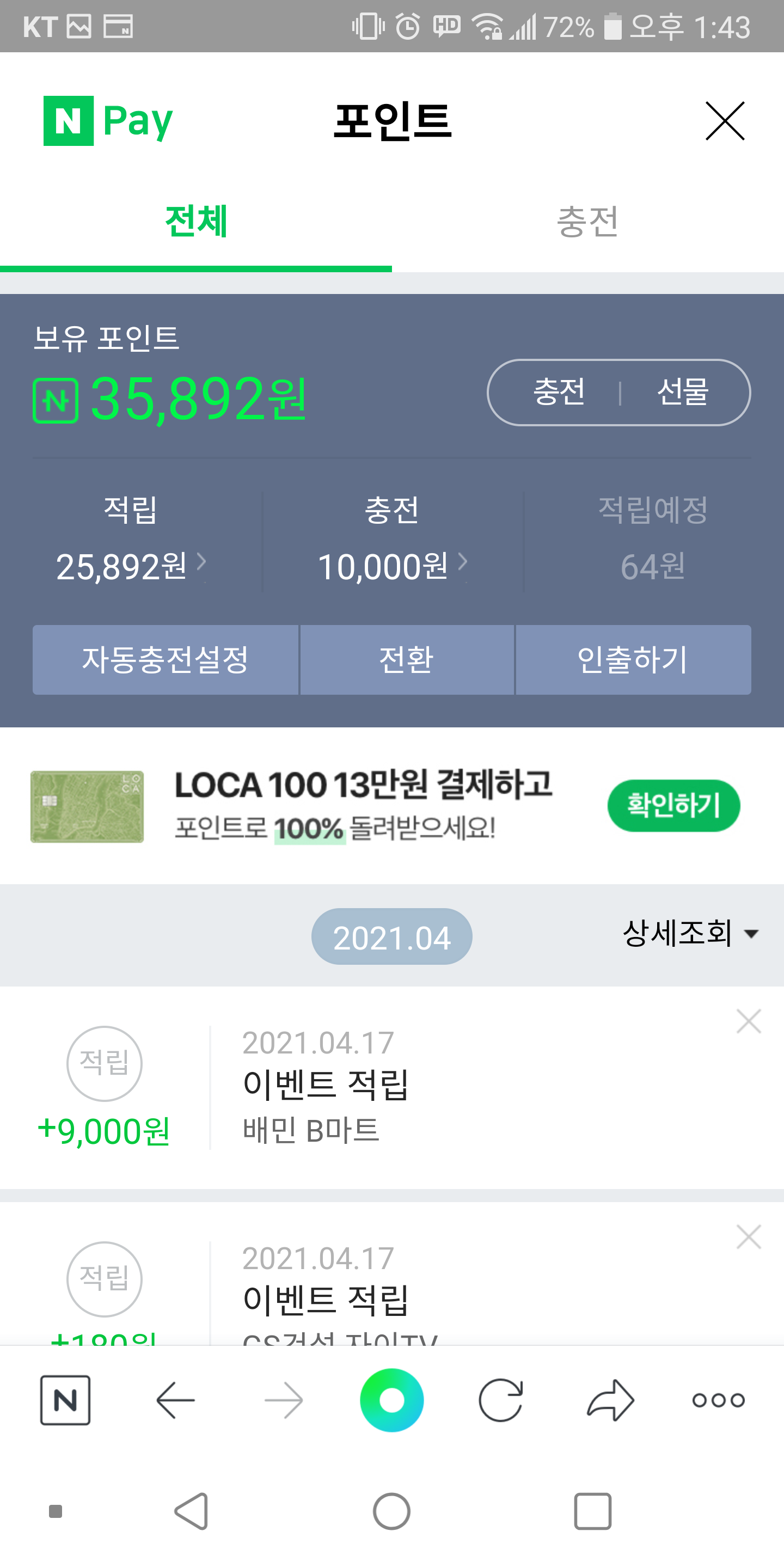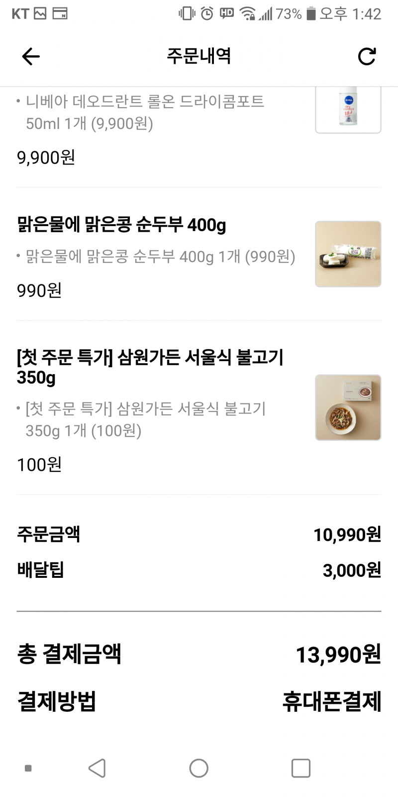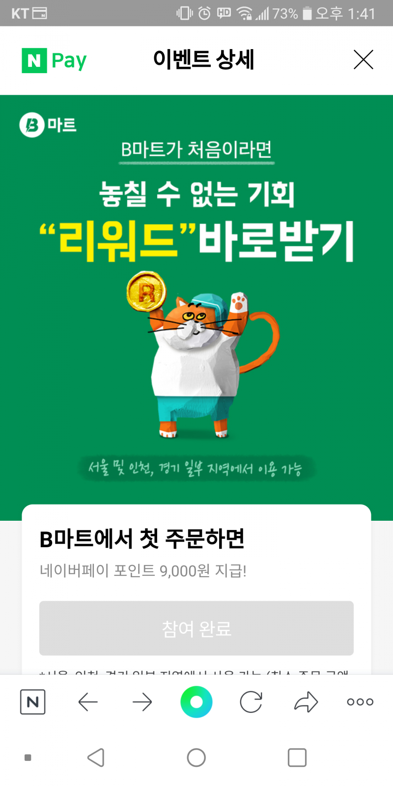 토모키 오늘도 포인트를 긁어모읍니다 [일반] 작성일시 : 2021. 04. 17 (13:50) 조회 : 2,483 / 댓글 : 2 네이버페이 포인트 즉시적립 이벤트에배민마트가 생겼더라구요만원이상 주문하면 된다길래이것저것 담고, 배민마트 첫 주문 100원에 불고기 획득 2추천 글쓰기스크랩 신고