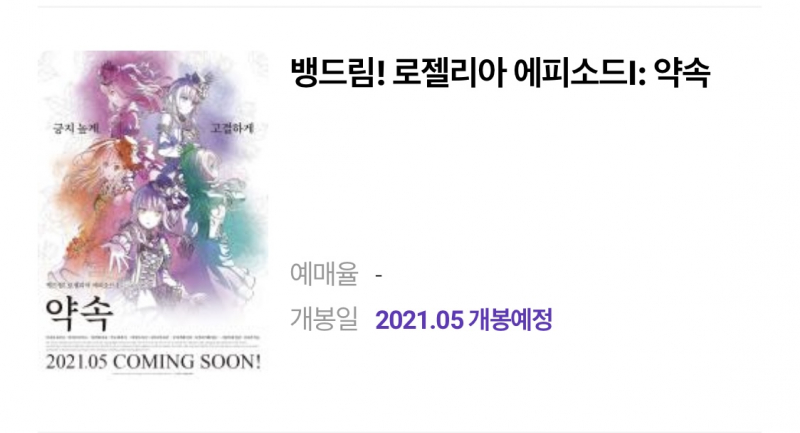 JINI 뱅드림 로젤리아 극장판이 곧 개봉할 것 같군요. [애니] 작성일시 : 2021. 04. 20 (01:48) 조회 : 2,819 / 댓글 : 1 메가박스 상영예정작에 올라와있습니다.일본에서 4월 말에 개봉하는데 우리나라 개봉도 상당히 빠르네요. 9추천 글쓰기스크랩 신고