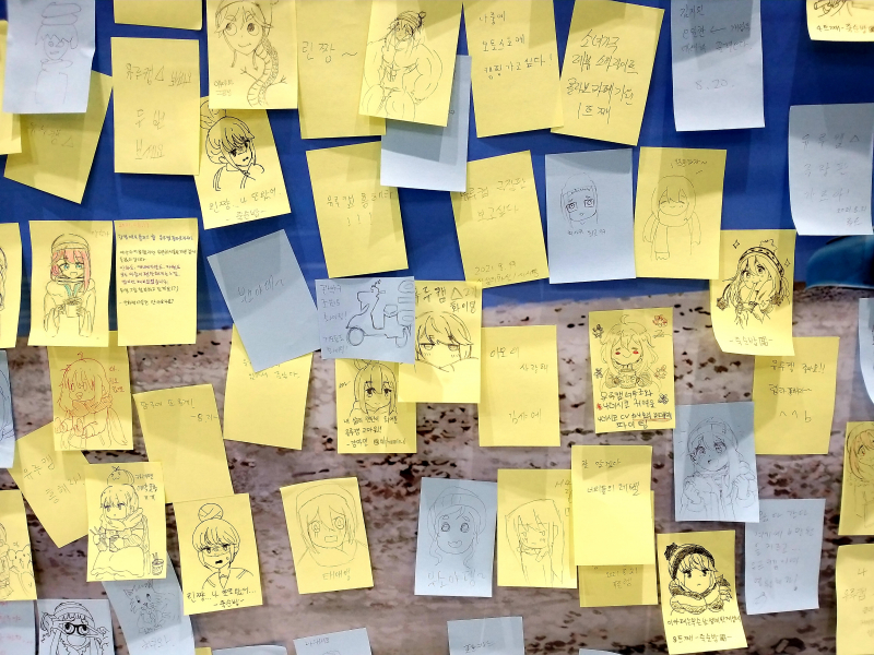 마린레빗 유루캠 콜라보 카페 방문기 [일반] 작성일시 : 2021. 08. 28 (18:28) 조회 : 1,875 / 댓글 : 5 지난 6월에 리뉴얼 된 애니플러스샵 매장에서 오픈하는 유루캠 콜라보 카페를 방문했습니다.나데시코 인증샷! ㅎㅎㅎ ♬캠프 포토존응원 메시지 (유루캠은 항상 코로나19 극복을 응원합니다. ㅅㅅ)여기서 내가 앉을 자리제가 주문한 말차 & 녹차 케이크 SET달달한 팥앙금과 녹차의 환상적인 조합 이 얼마나 맛있는가... = = ~~♡말차도 함께먹으니 달콤하고 맛있네요. ㅅㅅ 10추천 글쓰기스크랩 신고