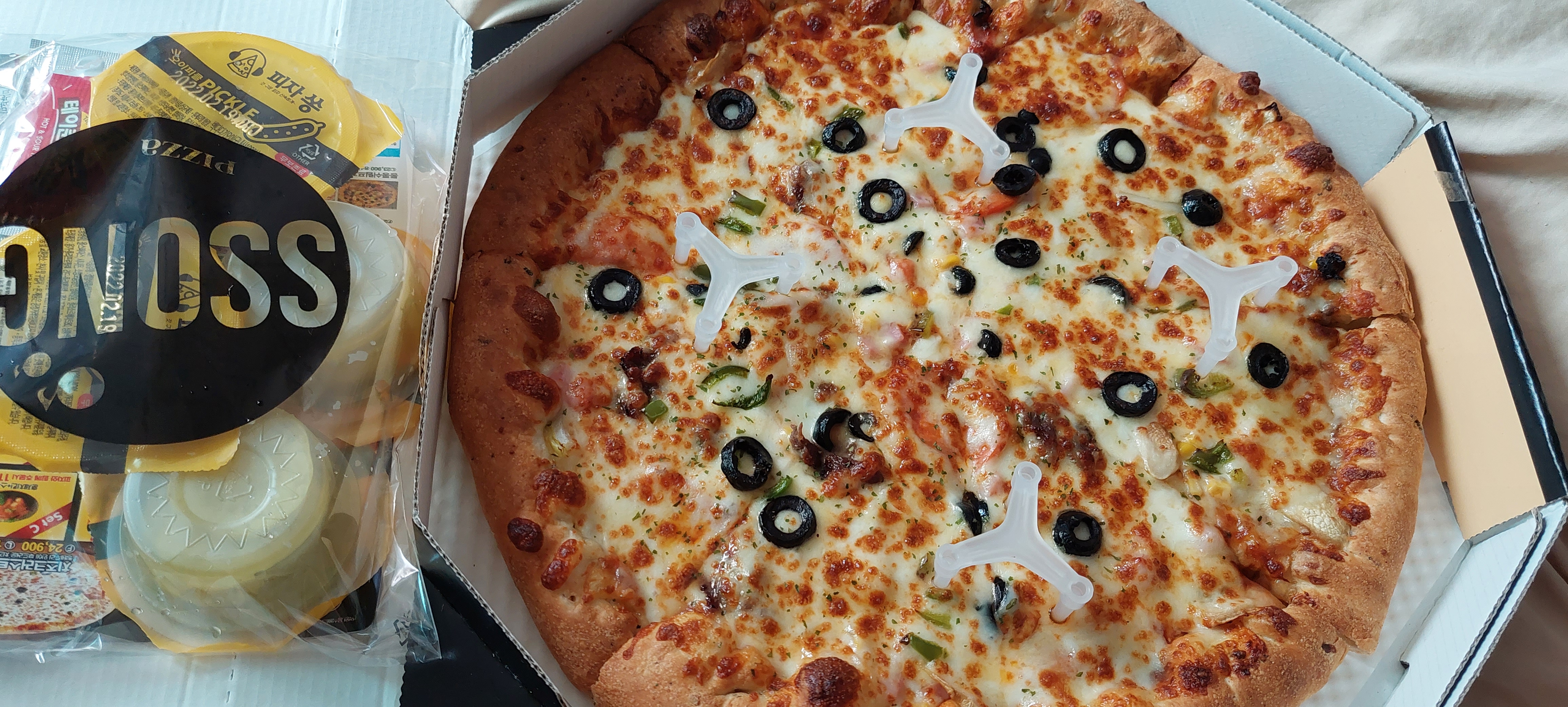 치즈크러스트 피자를 시켰어요~!