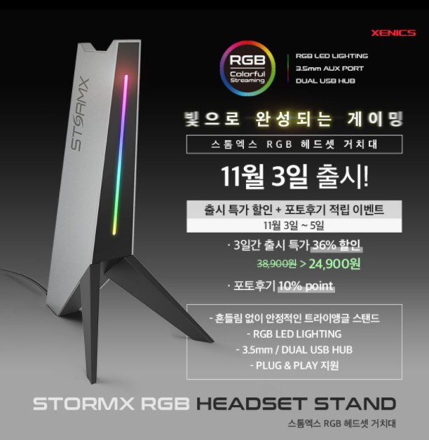 n210084995 제닉스에서 헤드셋 거치대 출시하네요~ [기타] 작성일시 : 2021. 11. 01 (09:47) 조회 : 1,316 / 댓글 : 0 요번에 제닉스에서 11월3일에 스톰엑스 RGB 헤드셋 거치대 출시하네요~이벤트로 36%할인이랑 포토후기 남기면 10%포인트 적립 해주네요헤드셋 그냥 책상위에 올려놓으시거나 바닥에 놓으시는 분들사시면 좋을꺼 같네요 참고하세요!! 6추천 글쓰기스크랩 신고