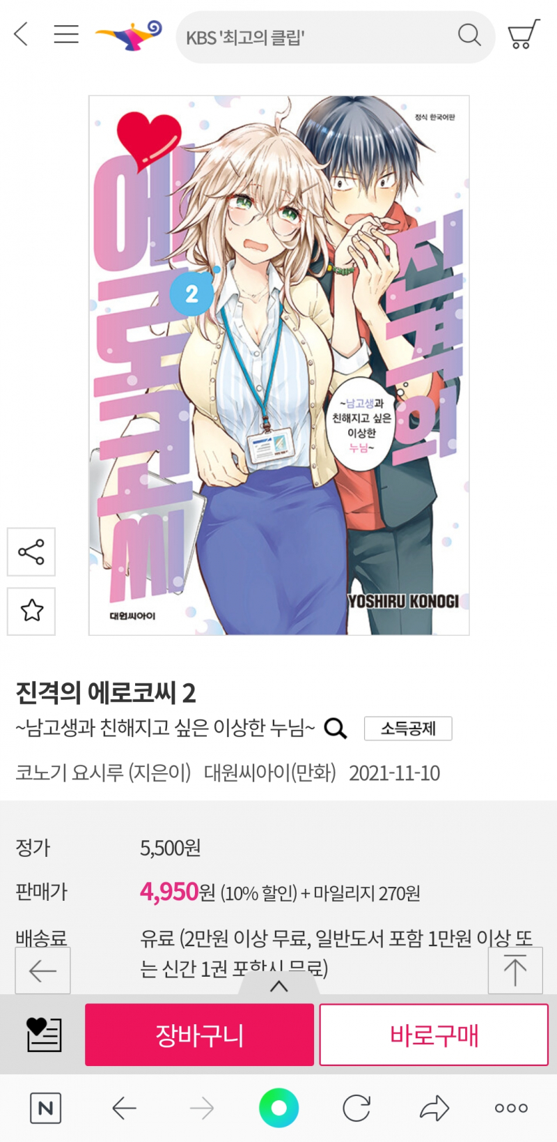 평범한송 이 만화책 2권 발매하군요. [일반] 작성일시 : 2021. 11. 09 (19:03) 조회 : 1,324 / 댓글 : 3 진격의 에로코씨 만화인데 1권 사서 본 적이 있는데요.2권 언제 발매하는지 기대 하고 있었는데 드디어 2권 발매하군요. 5추천 글쓰기스크랩 신고