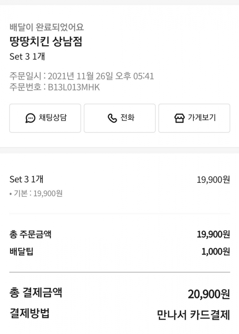 솔플 오늘 치킨 땡깁니다~ [일반] 작성일시 : 2021. 11. 26 (19:16) 조회 : 1,311 / 댓글 : 2 배달이 15분 도착햇네요... 땅땅치킨 드셔보세요 맛잇습니다 6추천 글쓰기스크랩 신고
