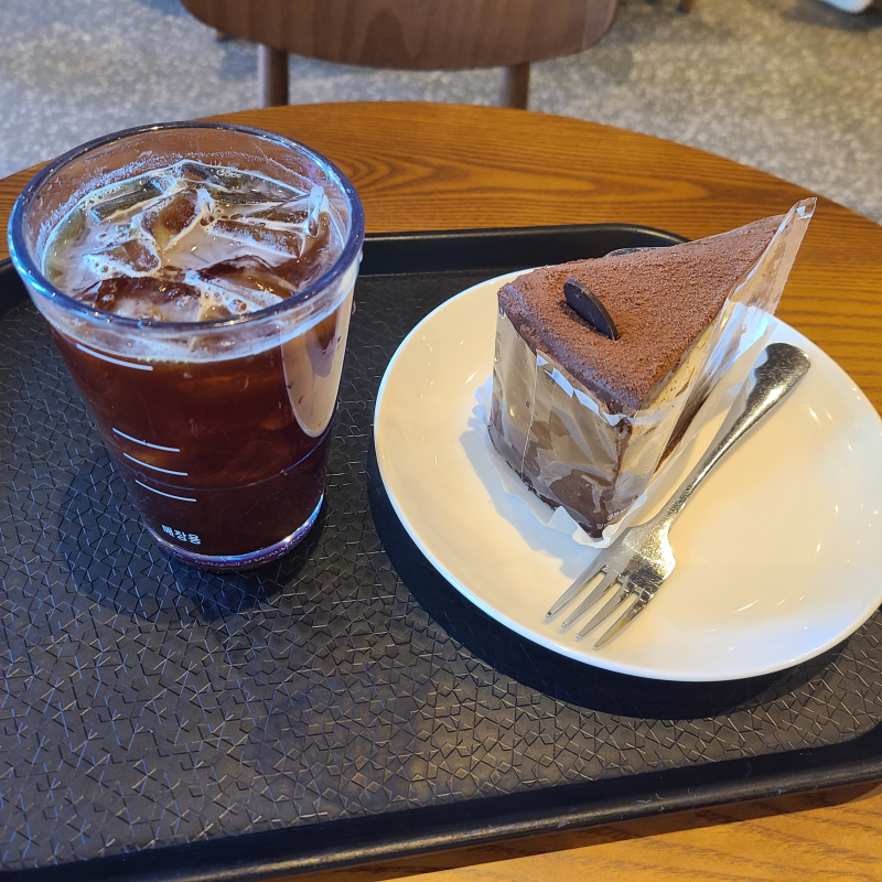이벤트에 당첨되어서 스타벅스 케이크+아메리카노 세트를 기프티콘으로 먹었습니다