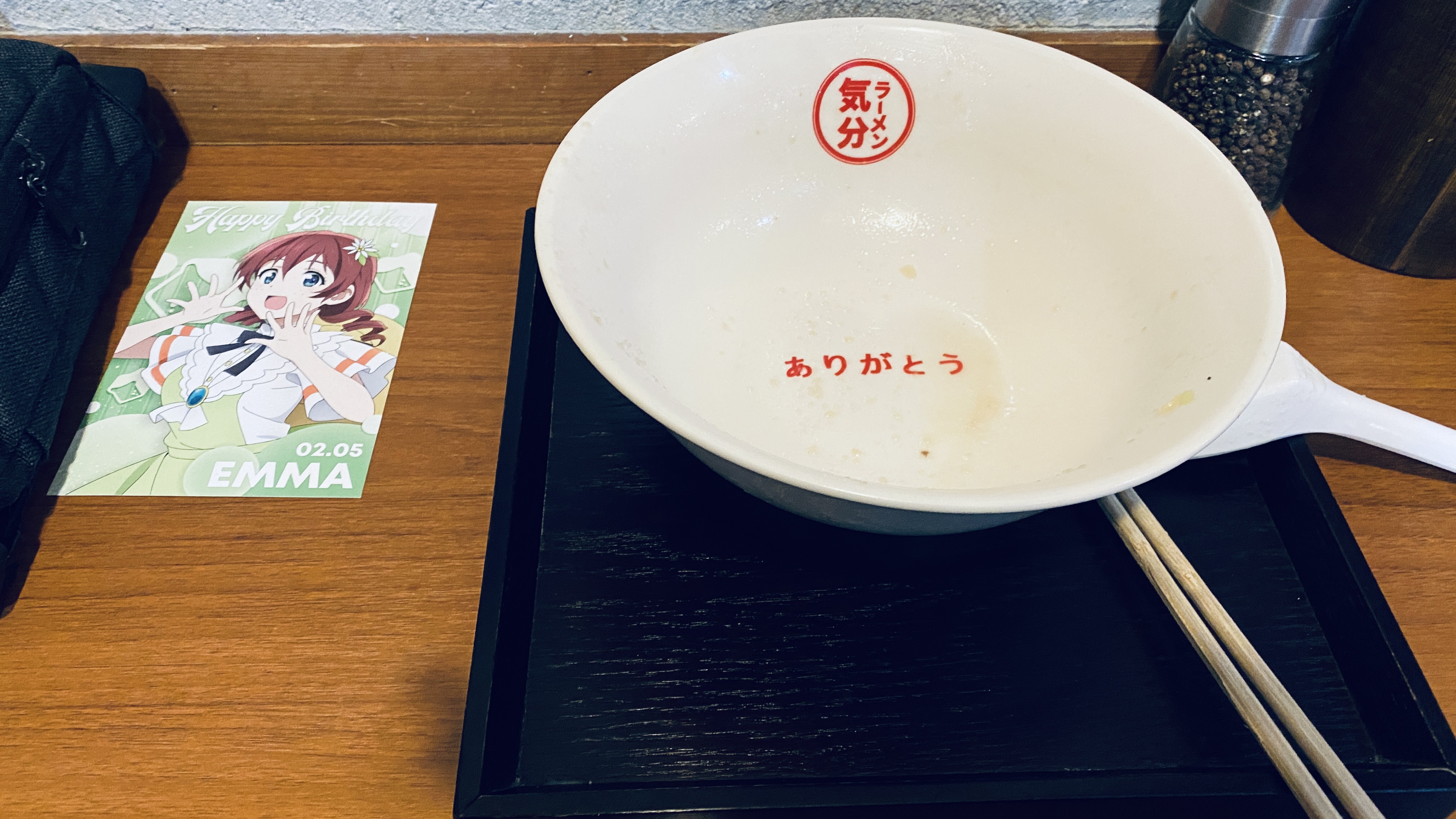 보라마키 안양 범계1번가의 라멘 맛집 라멘키분 [일반] 작성일시 : 2022. 02. 05 (19:19) 조회 : 1,921 / 댓글 : 12 오늘 애니플러스샵 간 다음에 집에 오면서 들른 안양시 범계사거리의 라멘 맛집 라멘키분에 갔다왔습니다!!(매장 외부사진을 못찍어와서 네이버지도의 정보로 대체했습니다.)엠마 생일특전이랑 함께♡전 매운 라멘보단 하나도 안매운 라멘이 더 좋아서 가게 간판 메뉴를 뒤로하고 돈코츠라멘을 먹었습니다.여기도 라멘을 다 먹으면 그릇에 아리가토! 라고 쓰여진 걸 볼 수 있습니다.라멘은 한 그릇으로도 배불러서 면 추가는 하지 않았습니다.라무네도 먹고 싶었는데 품절이라 돈코츠라멘만 먹었네요. 6추천 글쓰기스크랩 신고