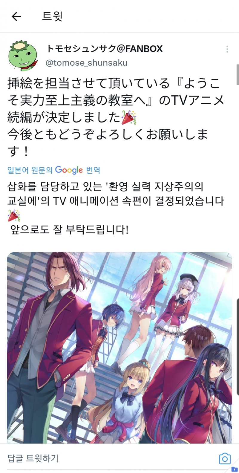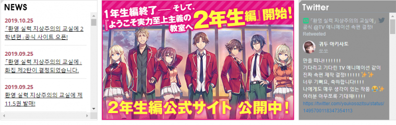 어서오세요 실력지상주의 교실에 속편 나왔네요