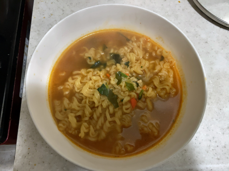 보라마키 저녁먹고 먹은 진라면 순한맛 [일반] 작성일시 : 2022. 02. 26 (22:05) 조회 : 1,383 / 댓글 : 8 사진은 없지만 저녁에 육회와 돼지고기 구이를 먹었습니다.근데 TV에서 라면을 끓여먹는 장면이 나오길래 저녁 먹고 좀 있다가 라면을 끓여먹었습니다.맛있게 먹었네요.참고로 전 진라면 순한맛 좋아합니다. 9추천 글쓰기스크랩 신고