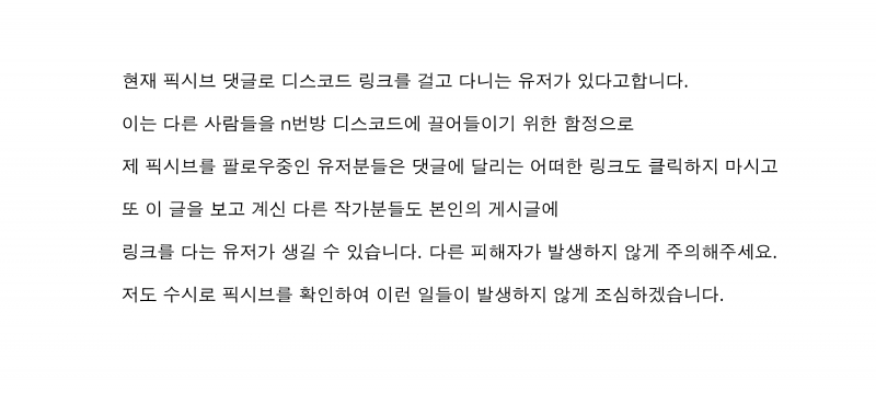전동감귤 커뮤니티 디코링크 조심하세요 [일반] 작성일시 : 2022. 03. 04 (14:51) 조회 : 1,394 / 댓글 : 6 (사진 출처: https://www.pixiv.net/artworks/96645437)최근 픽시브 및 커뮤니티 사이트 SNS에 덧글로 많이 다닌다고 합니다.다들 조심하세요다단계 같이 한번 걸리면 몇 명 낚아오면 풀어주는 식으로 늘린다고 하네요 9추천 글쓰기스크랩 신고