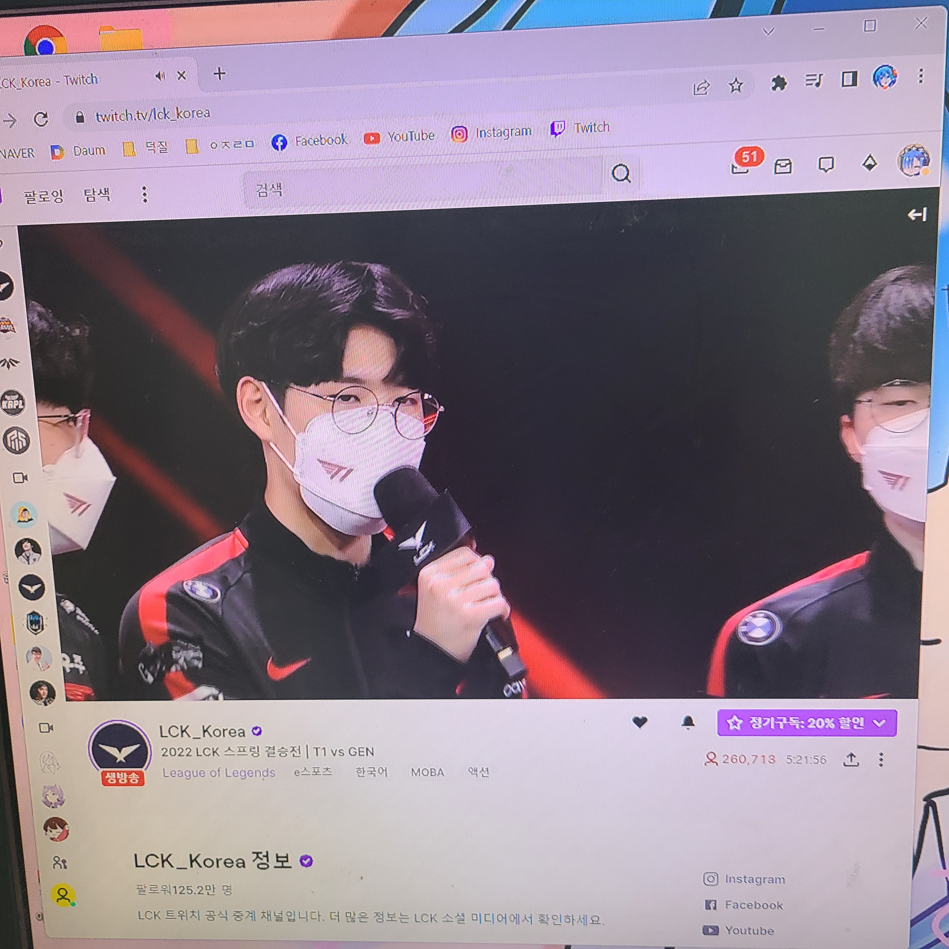 그리고 롤 한국 프로 대회인 LCK 스프링 결승전도 했죠