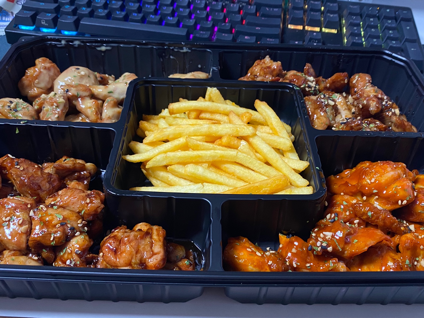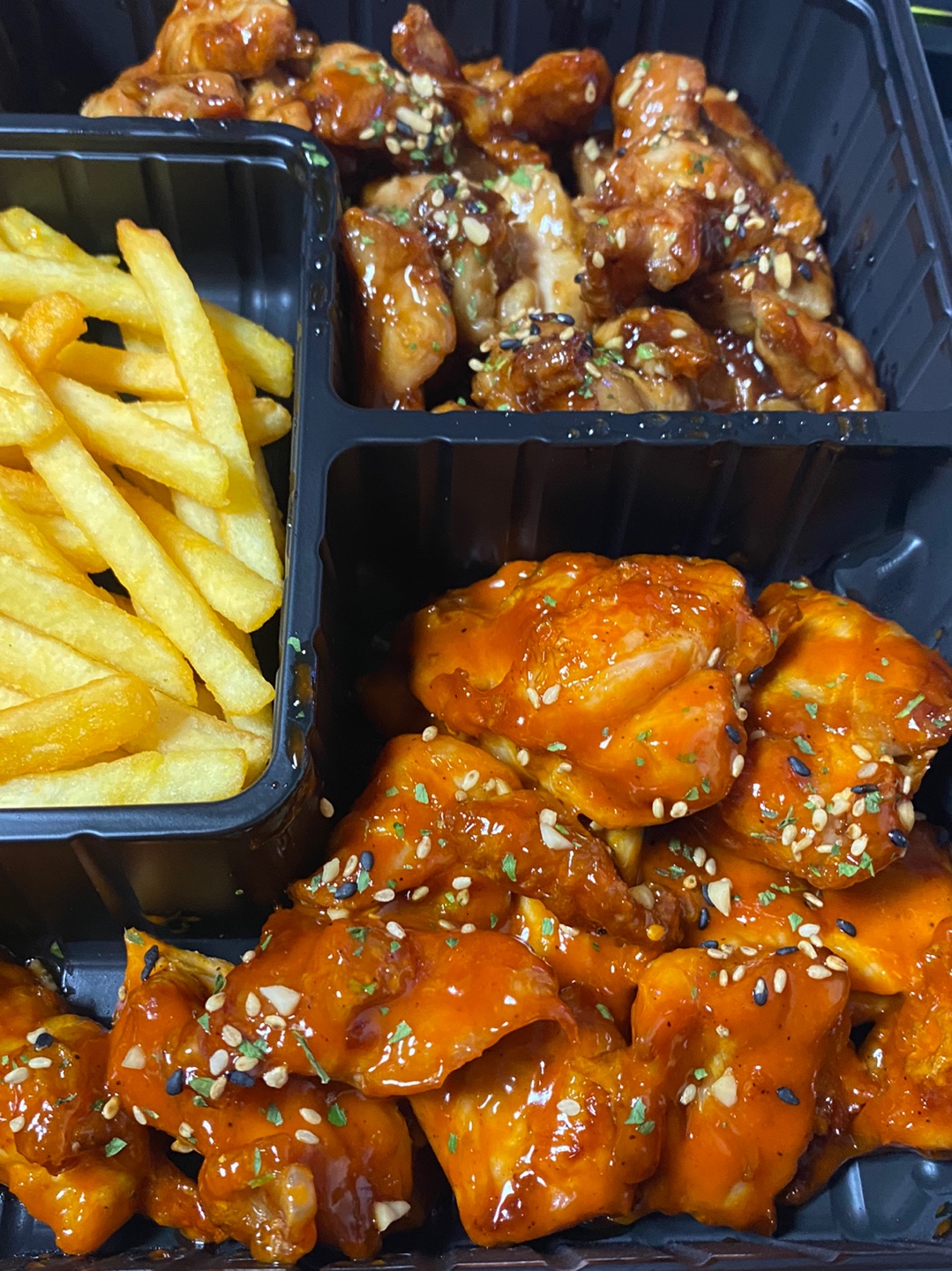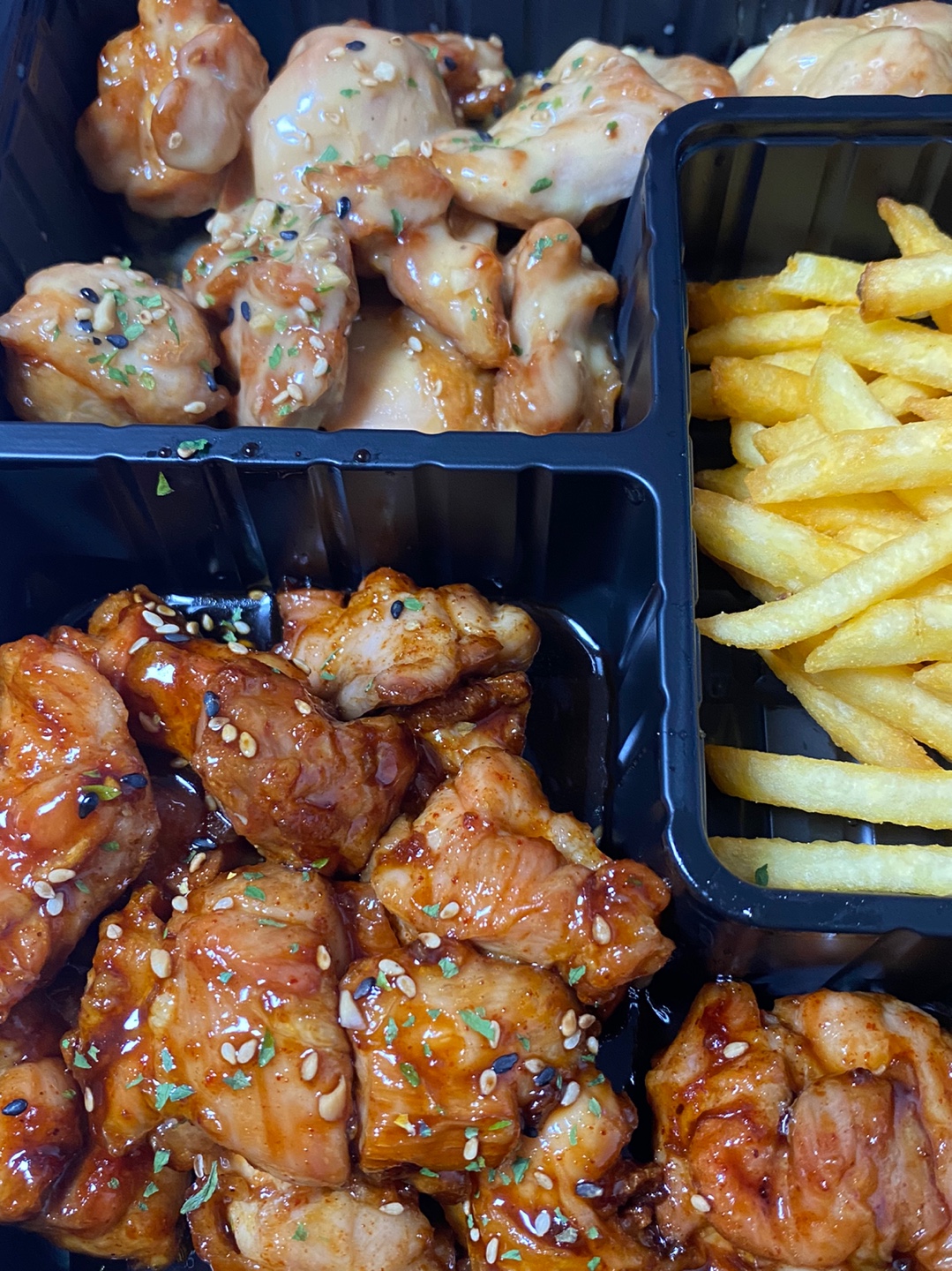 니노 순살만공격 [일반] 작성일시 : 2022. 05. 23 (14:41) 조회 : 1,734 / 댓글 : 10 원래 평일에 잘 안 시켜 먹는데 오늘 급발진으로 시켰습니다😊순살만공격 이라는 곳에서 시켜봤는데 4가지맛 1.5마리 2만7천원인가 하네요 ㅋㅋ 감자튀김 기본구성으로 들어있고 가격은 괜찮은 거 같아요 왼쪽 맨 위에부터 트러플, 바베큐, 매운바베큐, 볼케이노 였던 거 같은데 진짜 다 맛있네요 주변에 매장 있으시면 한 번 드셔보는 거 추천 드립니다~ 10추천 글쓰기스크랩 신고