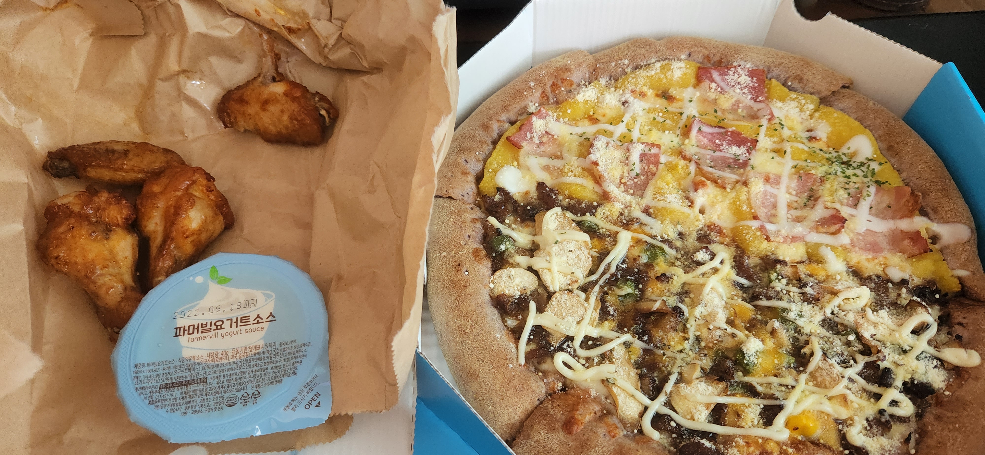 솔플 피자 시켯어요. [일반] 작성일시 : 2022. 06. 19 (13:48) 조회 : 1,328 / 댓글 : 5 배달비 1천ㄷㄷ..파머빌요 요거트소스 첨보네요. 찍으면 요거트 맛나요. 11추천 글쓰기스크랩 신고