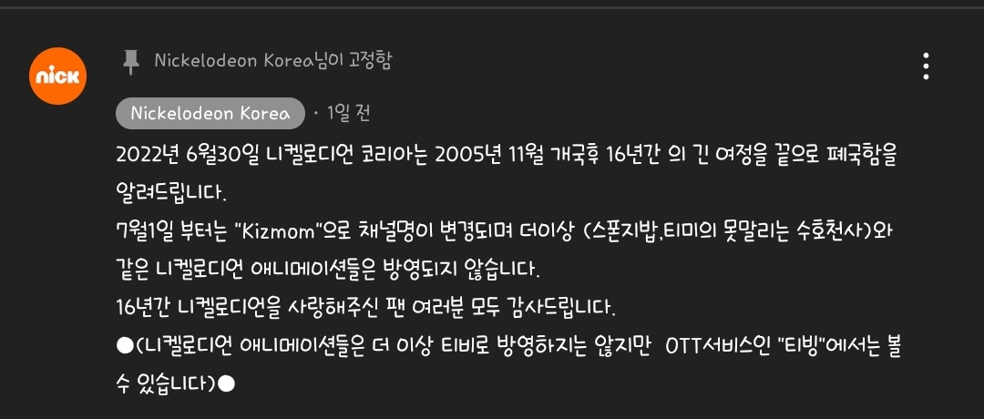 닉 애니는 더이상 티비에서 볼 수 없고