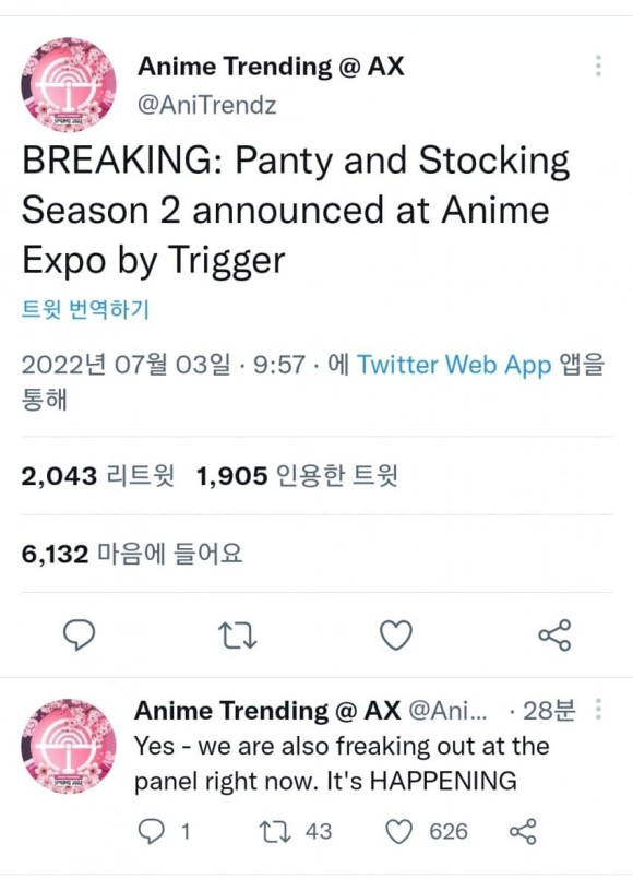 Lekar 팬티 & 스타킹 with 가터벨트 2기 제작 확정 [애니] 작성일시 : 2022. 07. 03 (13:09) 조회 : 2,303 / 댓글 : 5 님들이 아는 그 애니 맞음제작사는 당연히 가이낙스의 후신인 트리거진짜 몇년만에 나오는건지... 막컷 장면 이후로 너무 궁금했는데 11추천 글쓰기스크랩 신고