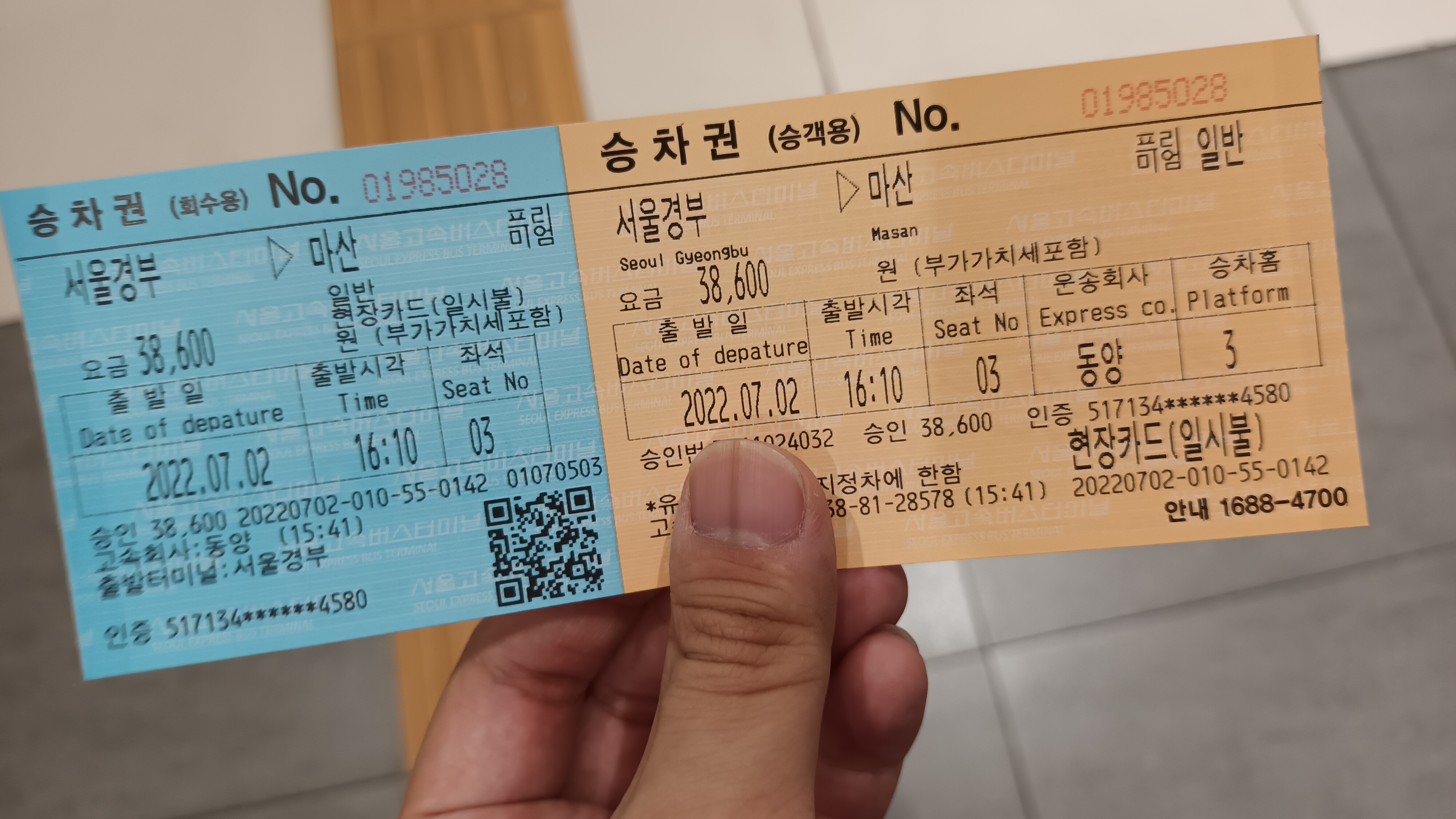 이것이 서울 고속터미널의 승차권