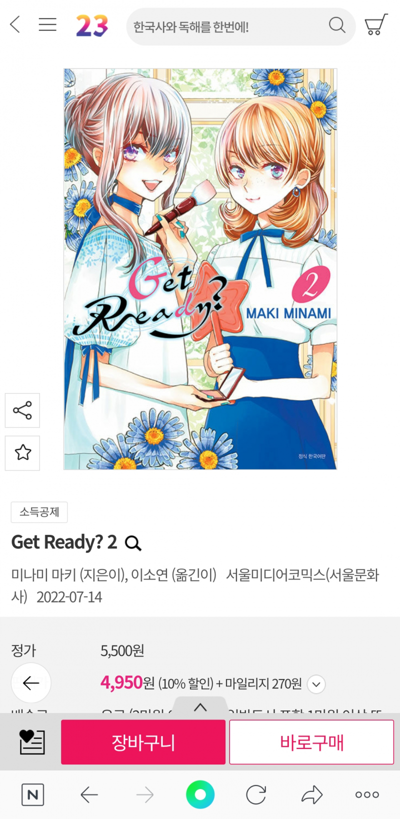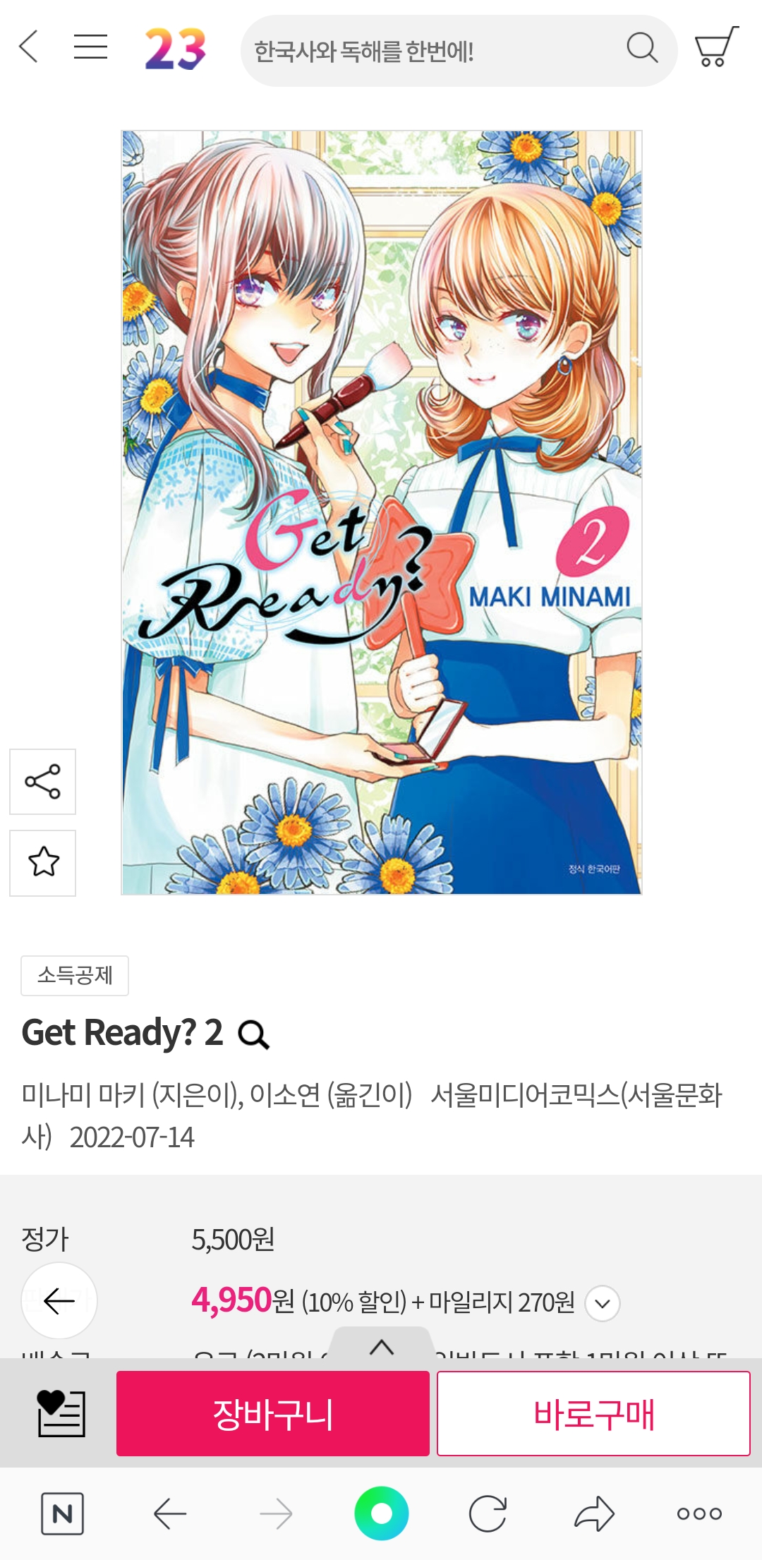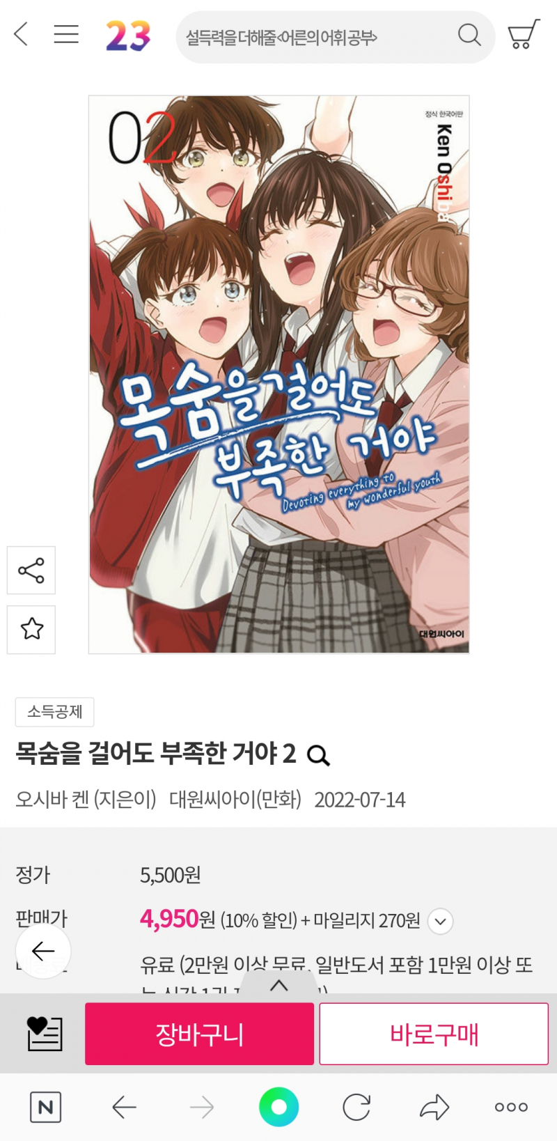 평범한송 이 만화책들 2권 정발하군요. [코믹] 작성일시 : 2022. 07. 13 (11:48) 조회 : 1,321 / 댓글 : 2 목숨을 걸어도 부족한 거야와 Get Ready? 만화책인데요.두 만화책 1권은 정발해서 소장하고 있는데 2권도 정발하네요. 5추천 글쓰기스크랩 신고