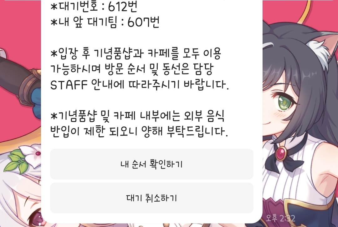 612번 축제 끝나기전엔 입장 가능할까...? 제일 처음으로 들었네요ㅋㅋ;;