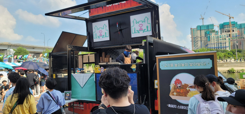 그리고 반차쓰고 온거다보니 점심을 안먹어서 겨우 줄서서 스테이크 사서 뒷쪽 자리에서 먹었습니다.