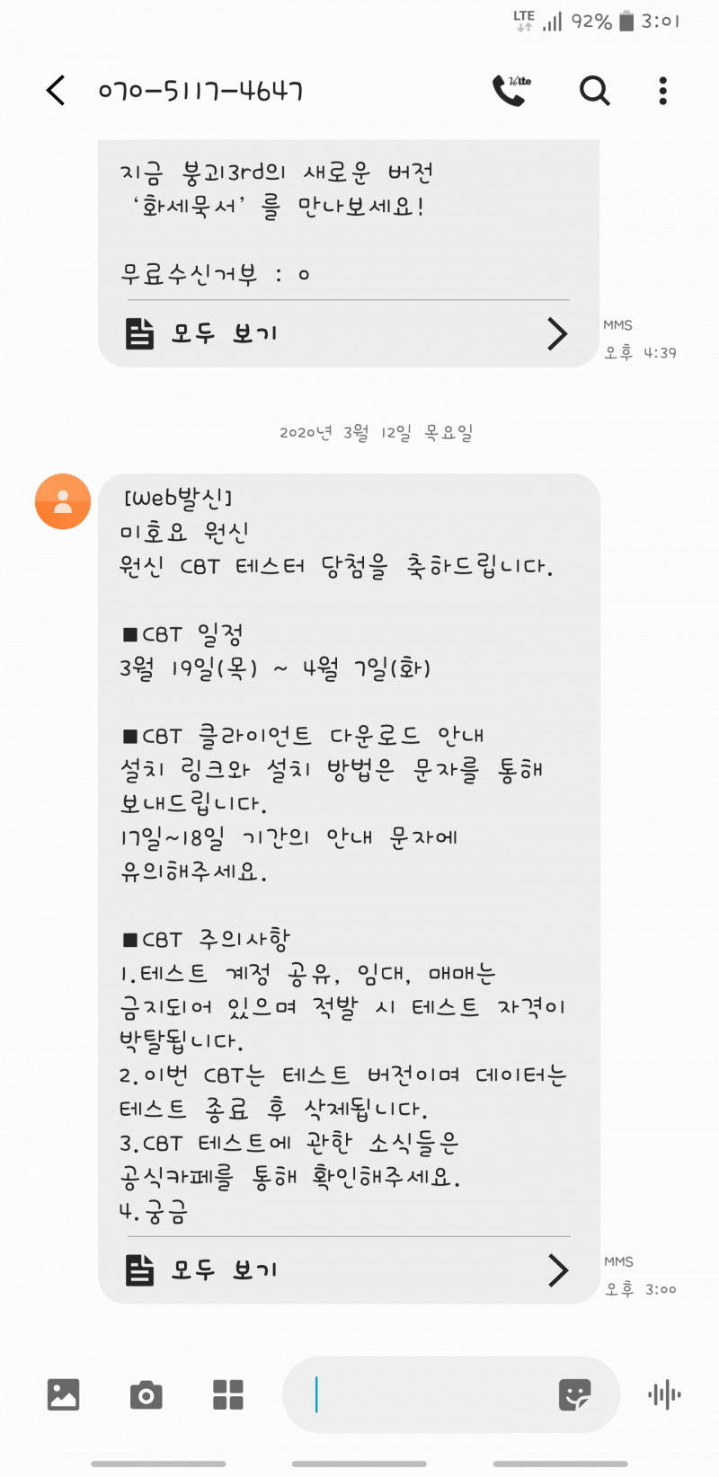 테스터 당첨 문자