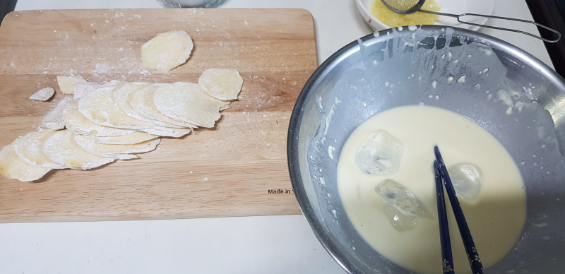 고구마는 다른 튀김 재료보다 비교적 저렴하고 많이 먹을 수 있어서 좋은거 같아요!