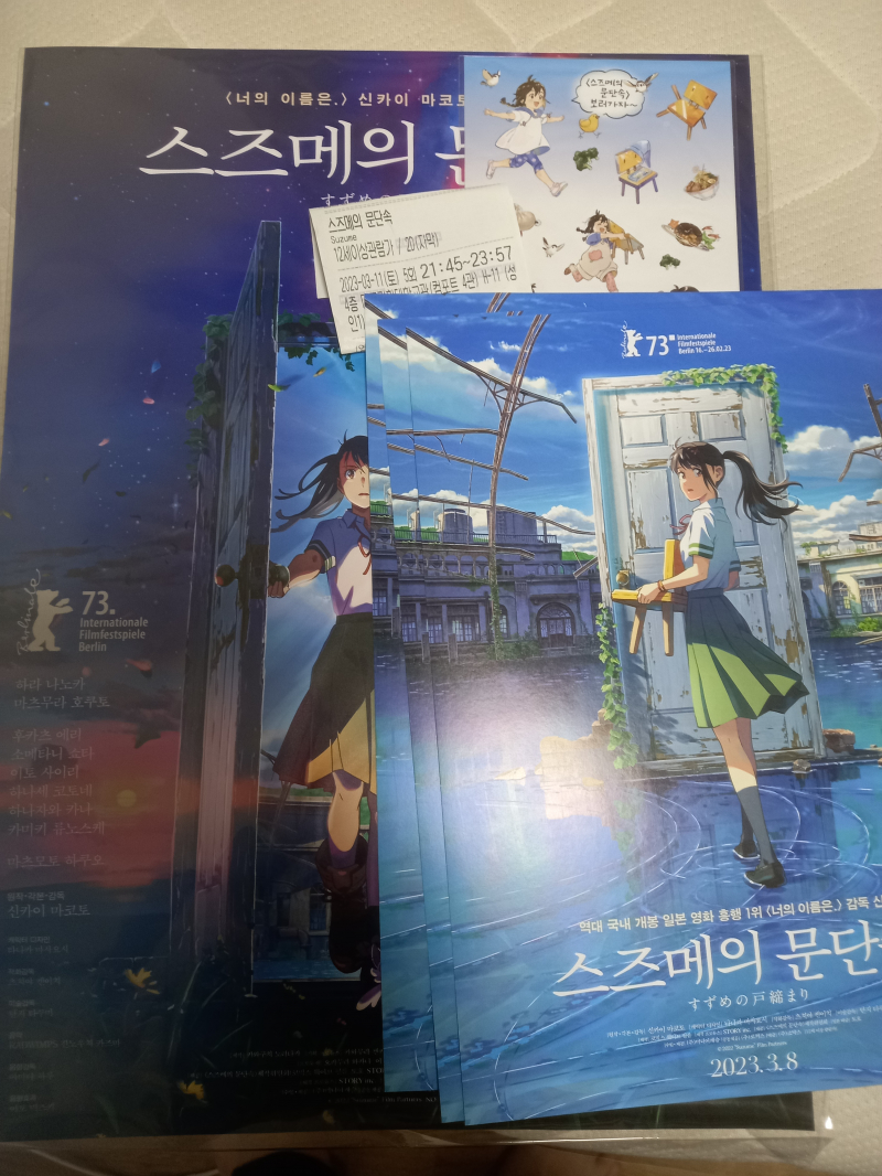디코드 토카 저도 스즈메의 문단속 보고왔어요. [애니] 작성일시 : 2023. 03. 12 (00:27) 조회 : 1,720 / 댓글 : 5 스즈메의 문단속 재미있다고 해서 집에 엄마,아빠 없는 틈을 타서 야간 영화로 보고 왔어요. 그리고 방금와서 글을 쓰고 있어요. 재미있게 보고왔어요. 넉놓고 빠져서 봤어요. 7추천 글쓰기스크랩 신고