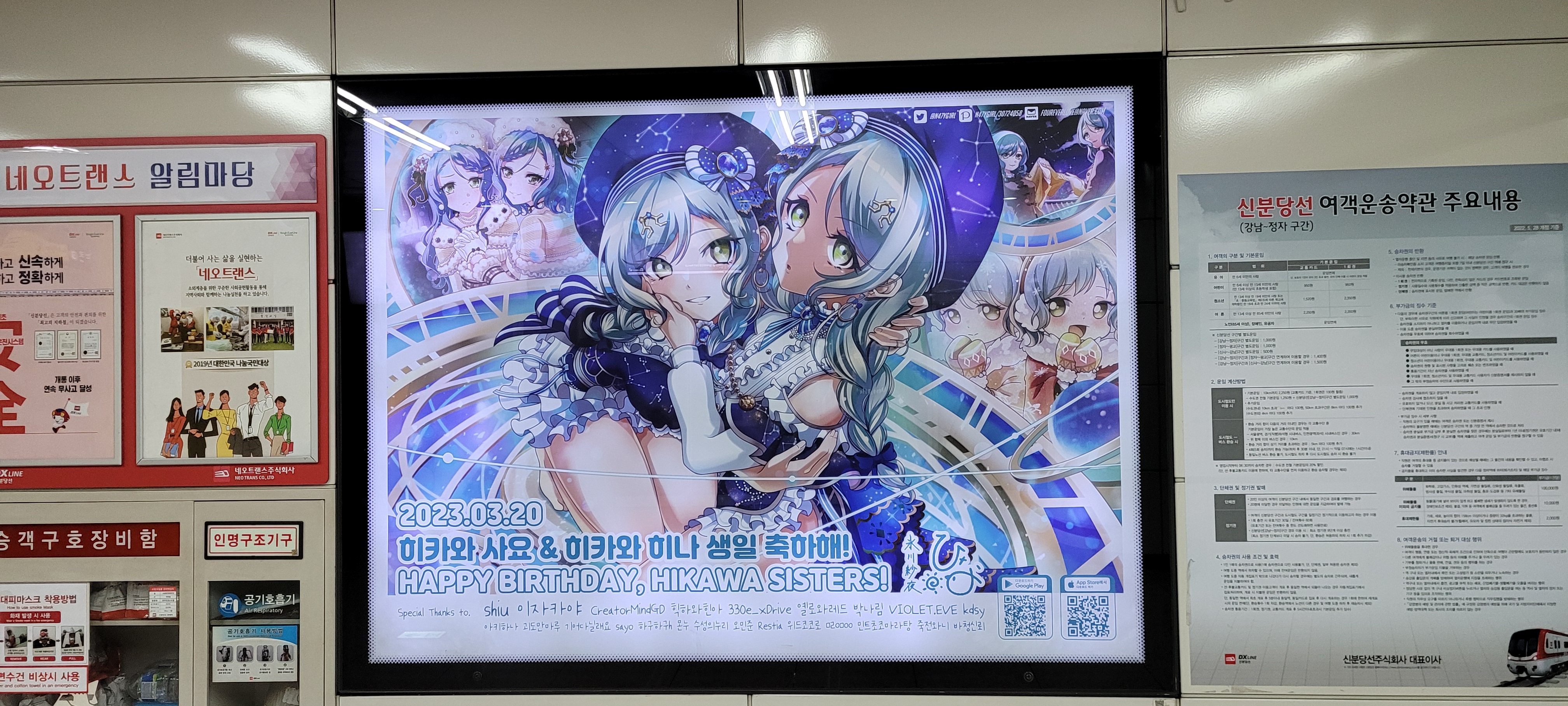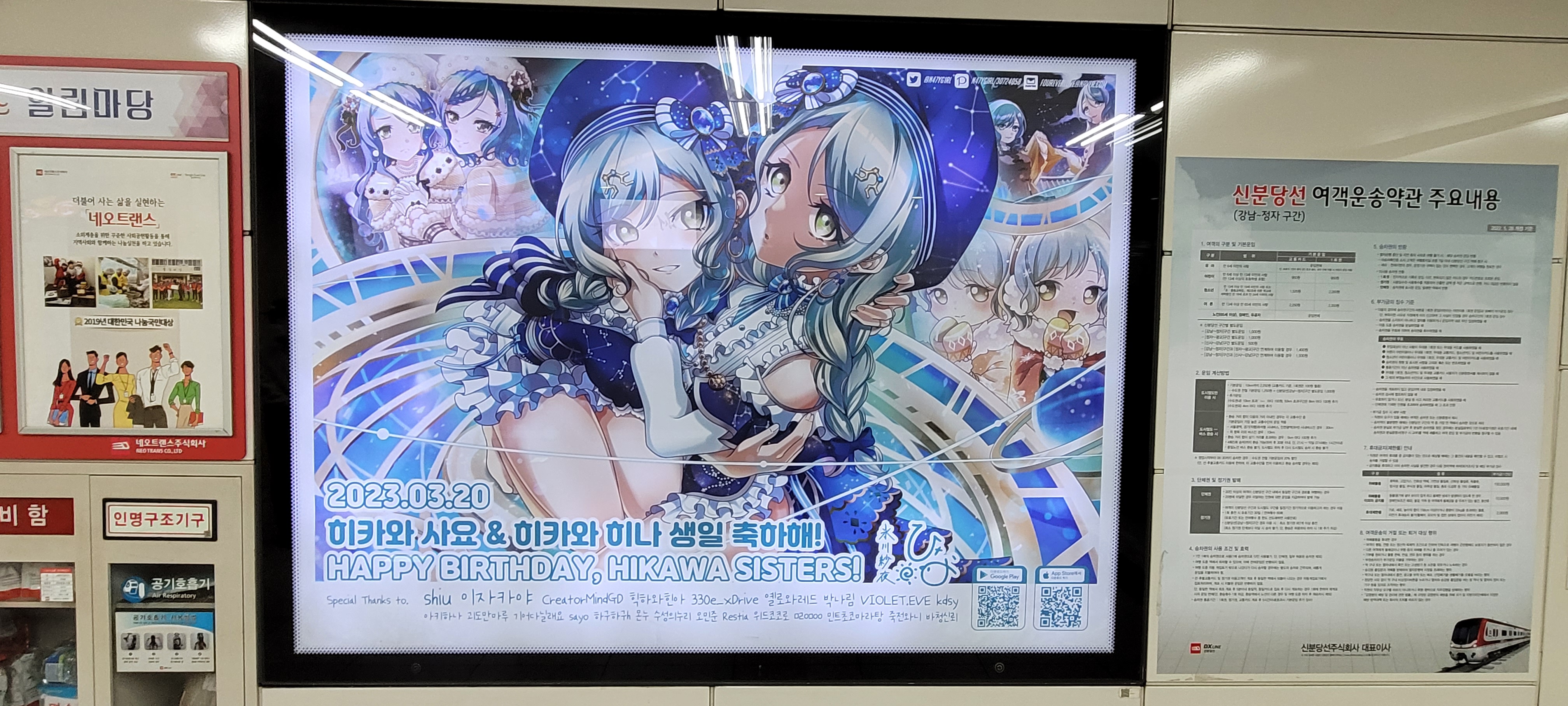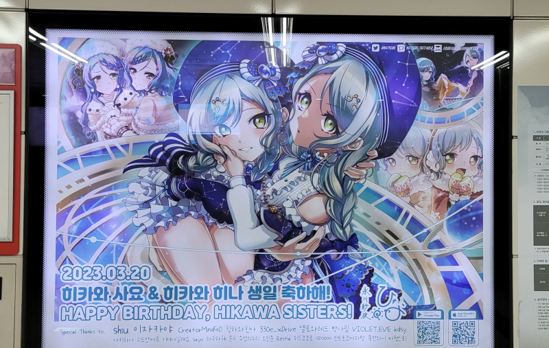 안달뷩 히나짱&사요짱 뱅드림 생일 전광판 구경하려 왔습니다~!!💕💕👍👍 [일반] 작성일시 : 2023. 03. 17 (20:43) 조회 : 2,003 / 댓글 : 12 히나짱&사요짱 생일 전광판 위치는 양재역 신분당선 지하4층 광교역 가는 방향 맨 앞쪽에 있어요 시간이 있으면 한번 구경해요 일러가 이쁘네요~!!💕💕👍👍 9추천 글쓰기스크랩 신고