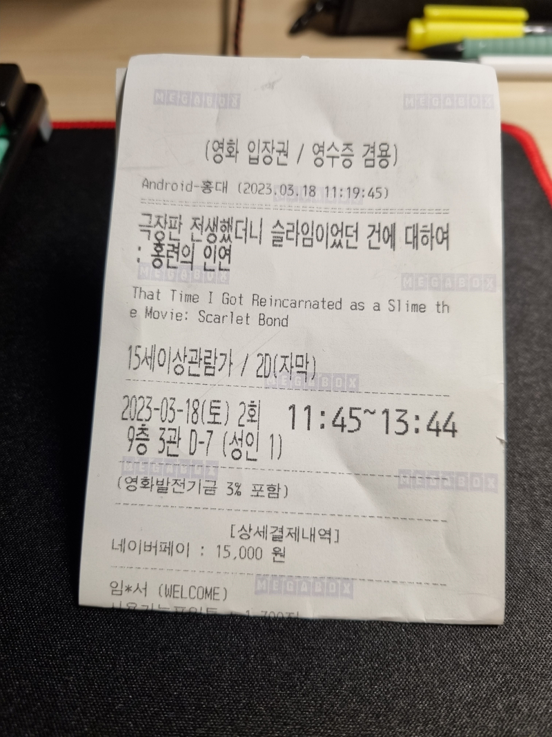 Xeon 전생슬 7주차 특전!! [일반] 작성일시 : 2023. 03. 18 (19:22) 조회 : 1,561 / 댓글 : 10 마지막이여서 상영하는 곳이 매우 적군요!!ㅠ아침일찍 홍대 갔다왔습니닷ㅎ랜덤이라 도박이였지만 다행히 원하던게 나왔군요!!!!저녁은 소세지와 후라잇.... 5추천 글쓰기스크랩 신고