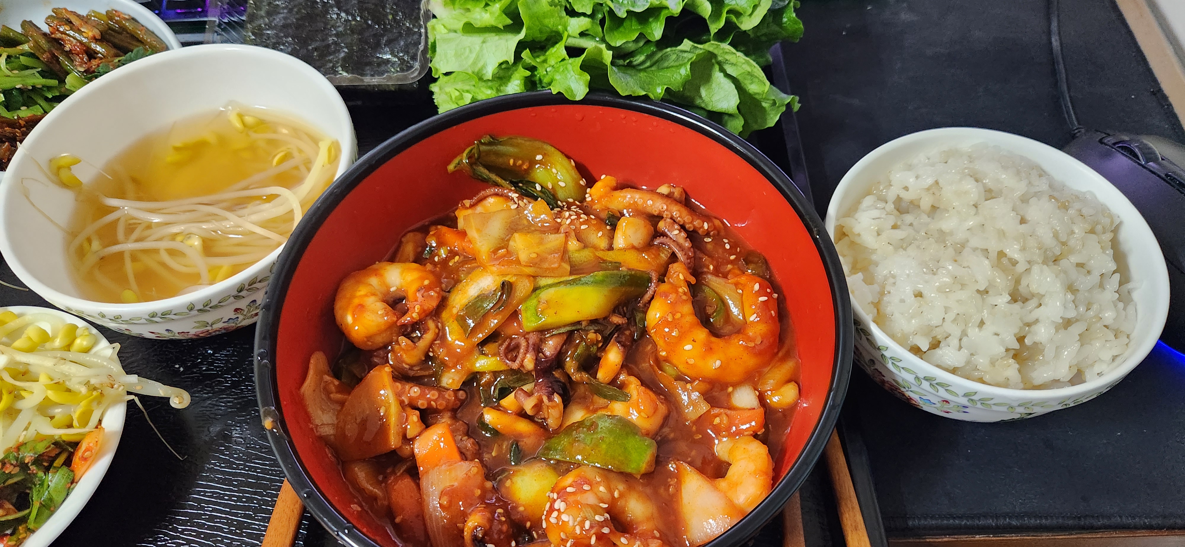 오~ 매운걸 중화시킬수 있는 콩나물 국까지!! 완벽한 차림이네요~