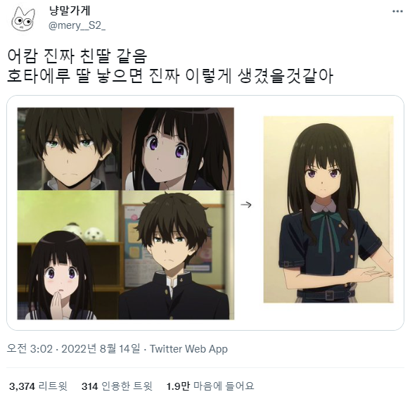 바이저 Vizer 트위터 보다가... [애니] 작성일시 : 2023. 03. 25 (20:28) 조회 : 1,847 / 댓글 : 8 어?다시 보니 얘도 참 대단하네ㅋㅋㅋ 9추천 글쓰기스크랩 신고