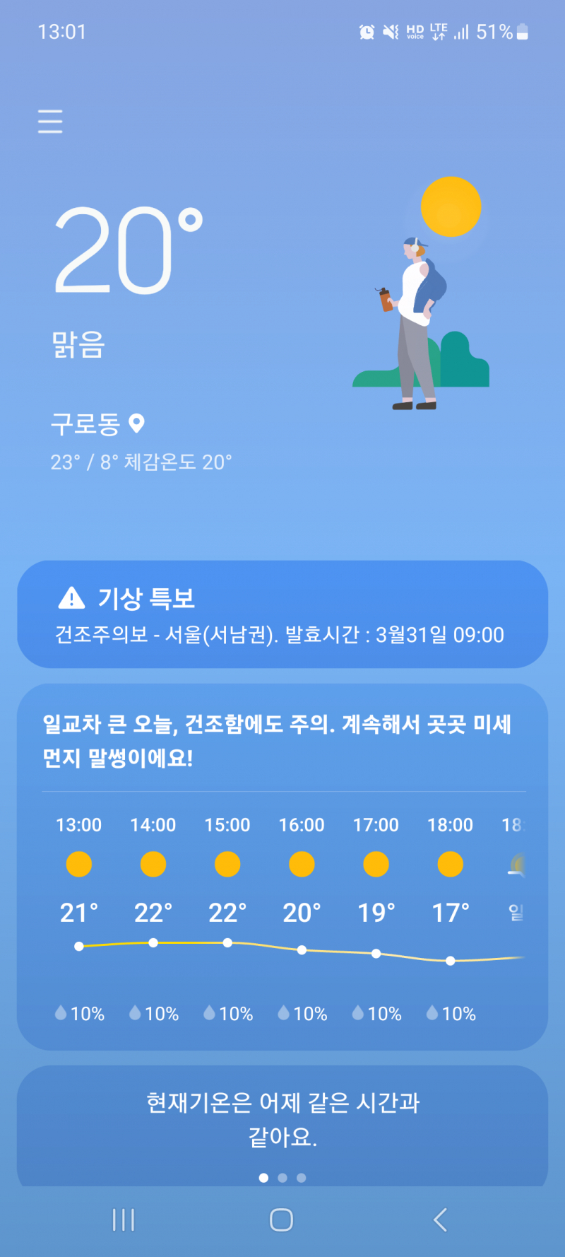 어쩐지 덥다 했더니 여긴 23도 군요!