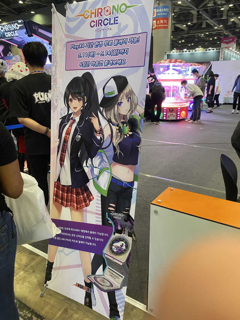 펌프 잇 업 제작사로 유명한 안다미로에서 유통하는 일본 아케이드 리듬게임 크로노 서클입니다.