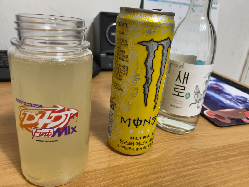 보라마키 집에서 간단하게 스트롱제로 만들기 [일반] 작성일시 : 2023. 05. 27 (10:39) 조회 : 2,497 / 댓글 : 5 몬스터 에너지 울트라 시트라와 제로슈거 희석식 소주를 준비해줍니다.소주를 절반 부어줍니다.그리고 남은 공간에 몬스터에너지 시트라를 부어줍니다.이 상태로 섞으면 됩니다.약 9도의 도수로 당류 없이 맛있게!!맛있게 빨리 취하기 좋은 STRONG ZERO!!이상 멘헤라의 에너지 음료 섞은 스트롱제로 제조기였습니다.글 다 쓰고 나니까 멘헤라 씨게 올 것 같네요… 하아… 8추천 글쓰기스크랩 신고
