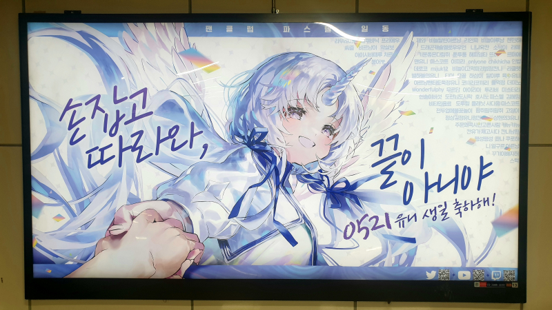팜유재원이 합정역있는 생일 전광판 보고왔단다~ [일반] 작성일시 : 2023. 06. 10 (21:27) 조회 : 1,877 / 댓글 : 4 합정역에 있는 생일 전광판 보고 왔단다~ 유니짱 생일, 아오짱 생일, 사카마타 클로에짱 생일, 스바루짱 생일 진심으로 축하해! 7추천 글쓰기스크랩 신고