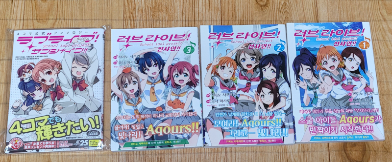 안달뷩 러브라이브 선샤인 만화책 버전~!!👍👍💕💕 [코믹] 작성일시 : 2023. 06. 21 (00:05) 조회 : 1,453 / 댓글 : 8 예전에 사온 만화책 입니다~!! 지금은 절판 이라서 중고 구매 외는 구입 불가능 합니다. 내용은 애니랑 비슷하지만 평행 세계관 이라서 다른 버전 세계관 이라서 보시면 되요 그리고 일본어 버전은 애니메이트에서 사온 버전 이라서 팬아트 같은 만화책 버전 이라고 생각하면 되요~!!👍👍💕💕 7추천 글쓰기스크랩 신고
