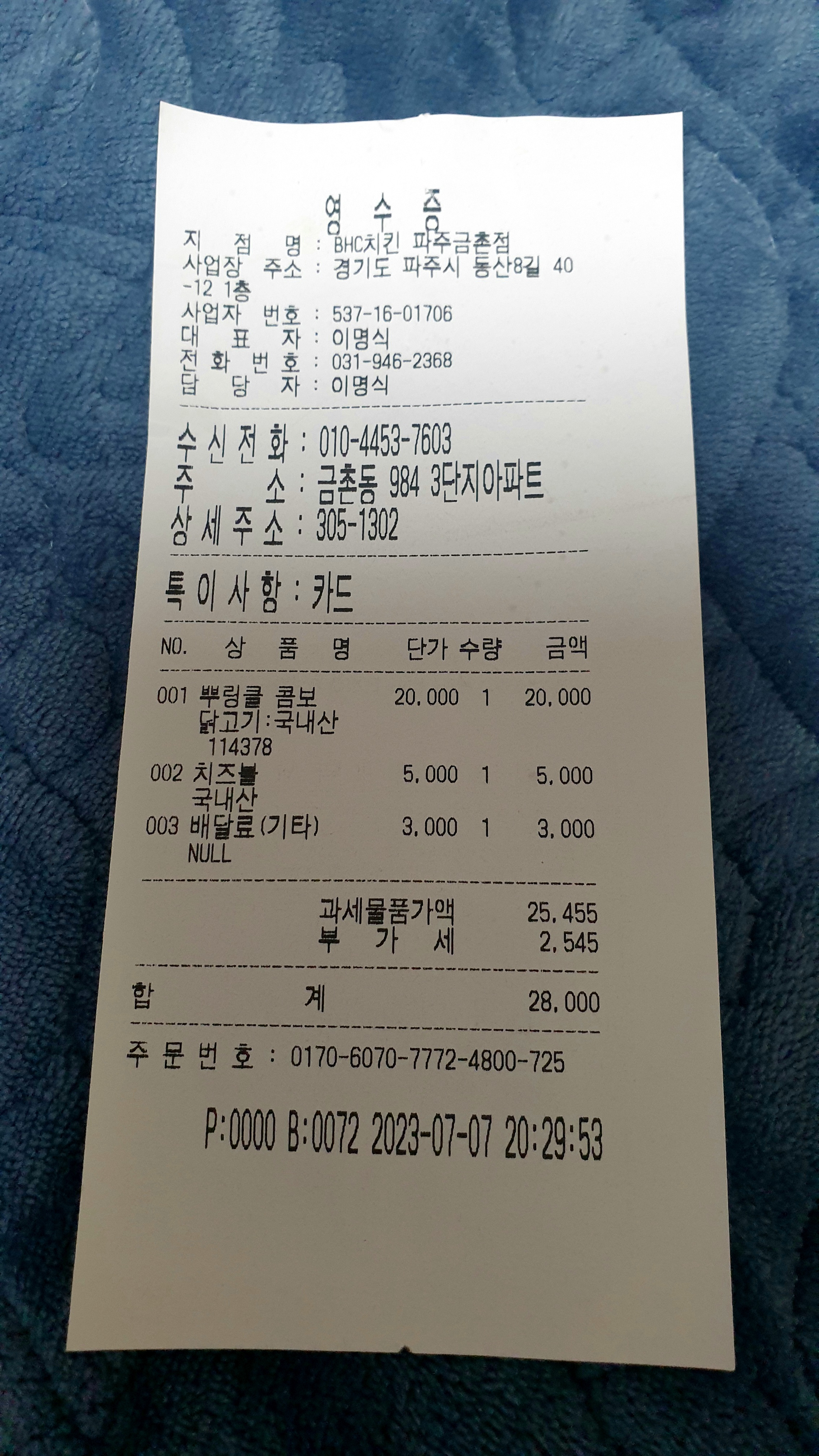 팜유재원이 BHC치킨 뿌링클 콤보 & 달콤 바삭 치즈볼 [일반] 작성일시 : 2023. 07. 08 (00:20) 조회 : 1,811 / 댓글 : 6 7월 7일 불금엔 야식은 BHC치킨 뿌링클 콤보, 달콤 바삭 치즈볼 이란다~ 배부르게 먹었단다~^.^ 10추천 글쓰기스크랩 신고