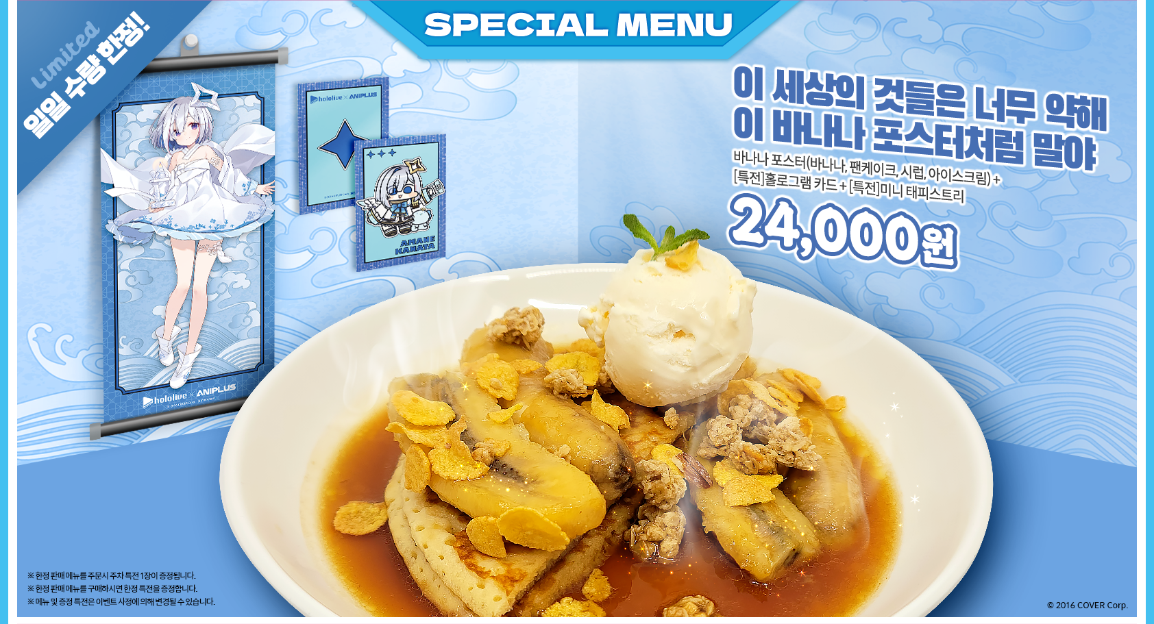 안달뷩 애니플러스샾에서 홀로라이브 4기생 콜라보 카페 하네요~!!💕💕👍👍 [일반] 작성일시 : 2023. 07. 29 (14:51) 조회 : 2,505 / 댓글 : 6 우와~벌써 3번째 홀로라이브 콜라보 카페 등장 했어요~!!💕💕👍👍 다음 달 8월 10일날에 합니다~!!💕💕👍👍 이번에도 네이버 예약제 인지 궁굼하네요~!!💕💕👍👍 출처(링크) : https://www.aniplustv.com/storeCollaboCafe 6추천 글쓰기스크랩 신고