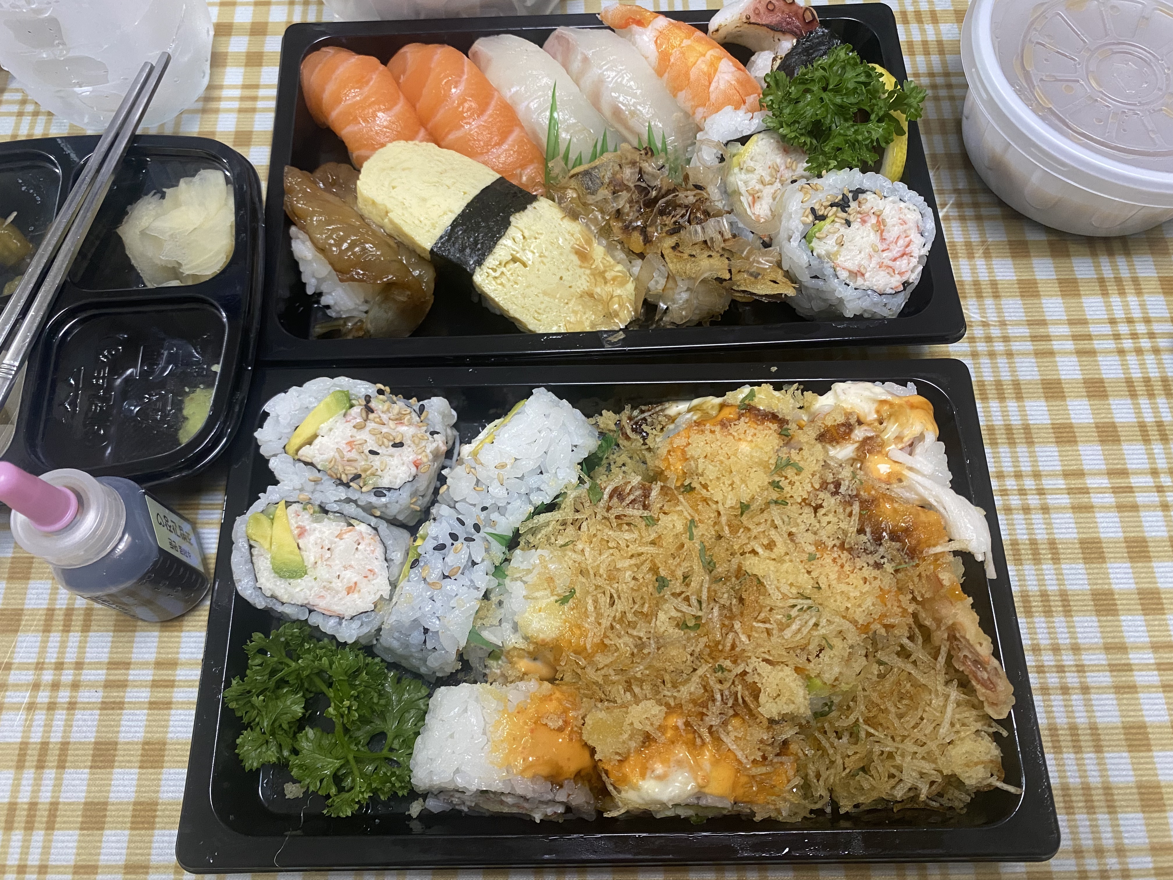 스시체인점에서 사오셨군요. 😄 가끔은 초밥 테이크아웃하는것도 맛있게 잘먹어야 나쁠건 없죠. ㅅ ㅅ