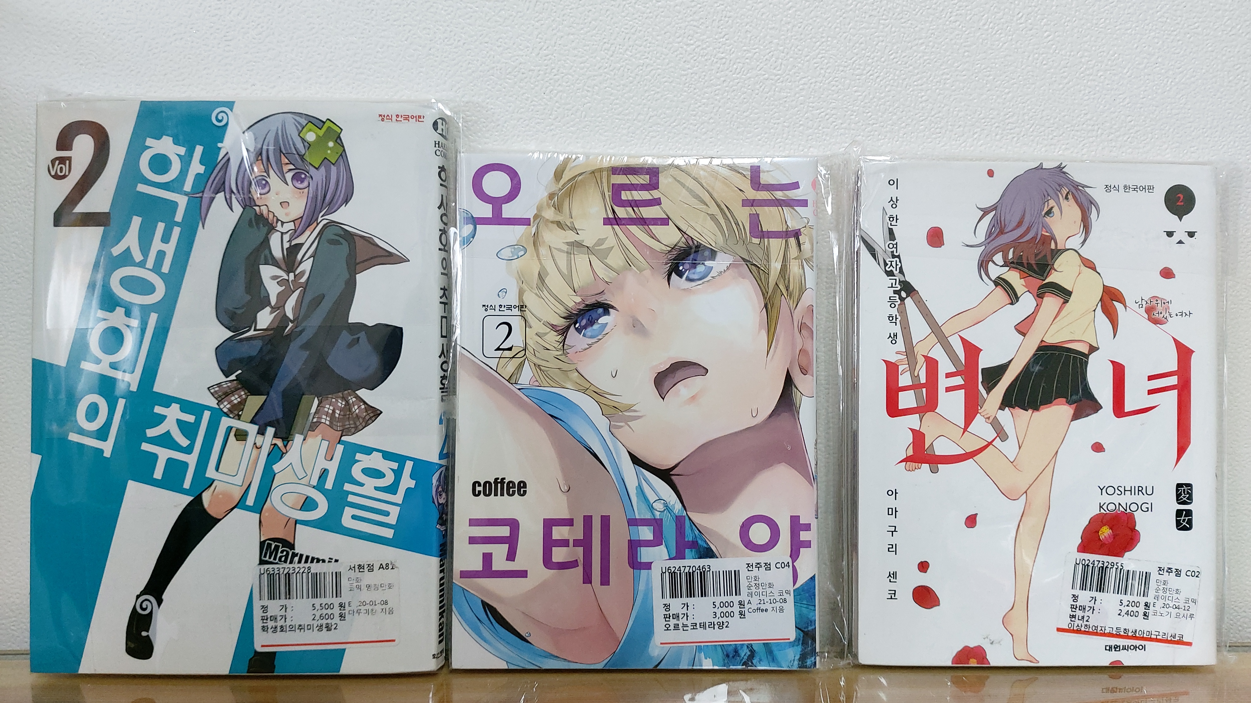 그리고 알라딘 중고서점에서 산 만화책들을 거의 절판된 작품들인데 작품들 제목 다 다르지만 전부다 2권이네요.