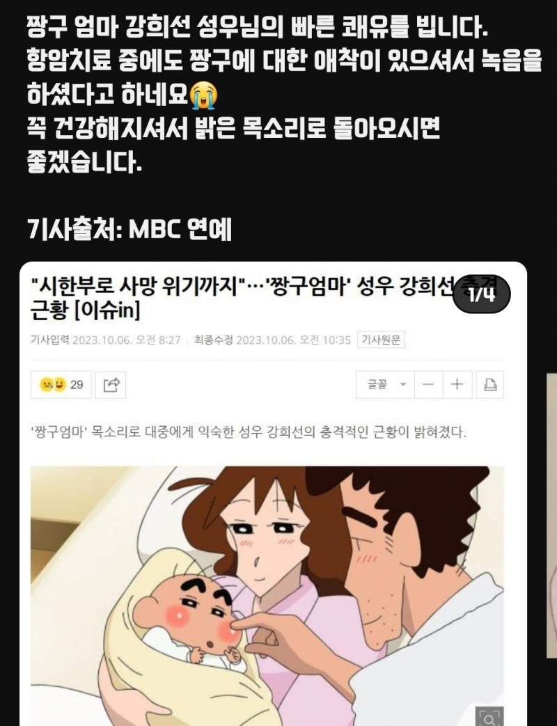 바이저 Vizer 강희선 성우님의 빠른 쾌유를 빕니다 [기타] 작성일시 : 2023. 10. 10 (00:10) 조회 : 1,727 / 댓글 : 7 몸 치료와 회복에 집중했으면 더 좋겠는데성우님 애정이 대단합니다..... 8추천 글쓰기스크랩 신고