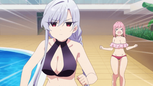 수영복 차림으로 달리는 나노와 하카리