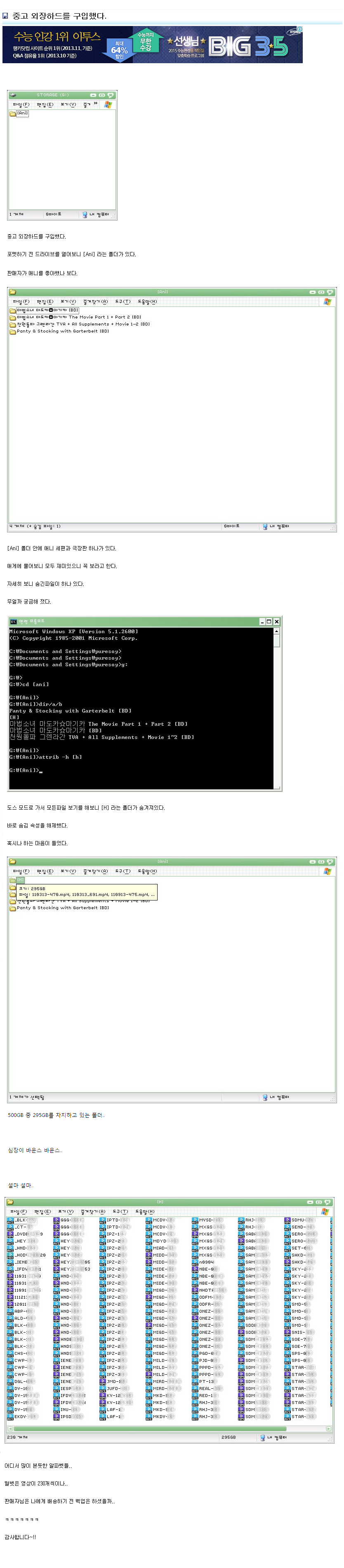 중고 외장하드를 구입했다