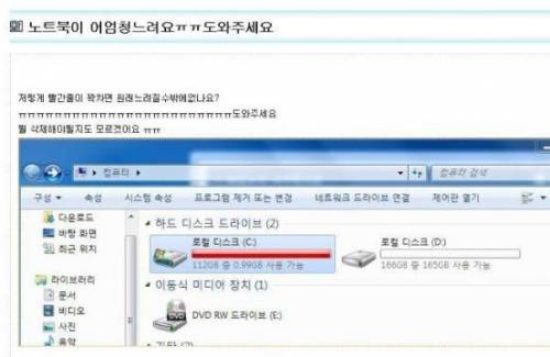 린스갓 신개념 컴퓨터 학대 [일반] 작성일시 : 2016. 05. 21 (20:07) 조회 : 970 / 댓글 : 5 ㄷㄷ 주인아 D드라이브도 용량 있단다... 출처(링크) : http://blog.naver.com/lgs221/220715683856 1추천 글쓰기스크랩 신고