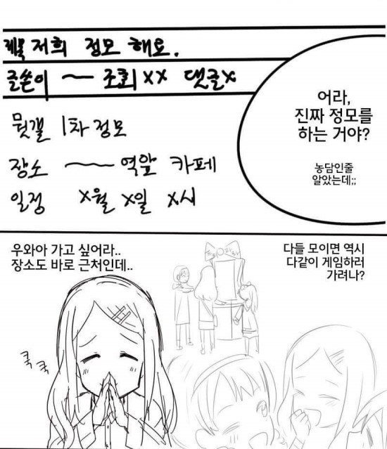 린스갓 어린 소녀가 애니메이션 정모 가는 만화 [일반] 작성일시 : 2016. 06. 20 (12:27) 조회 : 2,180 / 댓글 : 3 의외로 재밌게 놀았네요 ㅋㅋ마지막 짤 '놓지마정신줄' 웹툰에 사장님까지 등장! 1추천 글쓰기스크랩 신고