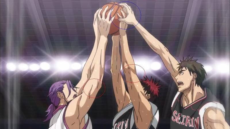 그리고 빨간색 동그라미를 보시면.. 카가미와 무라사키바라의 팔꿈치가 눈에 띄게 굽혀있는 것을 보실 수 있습니다..