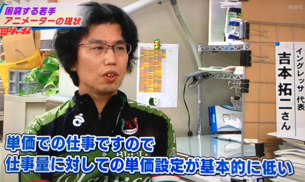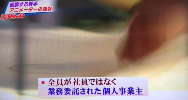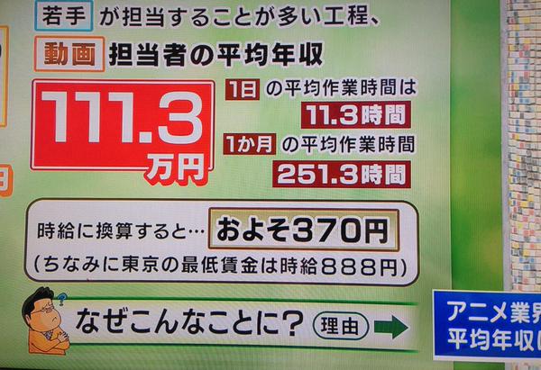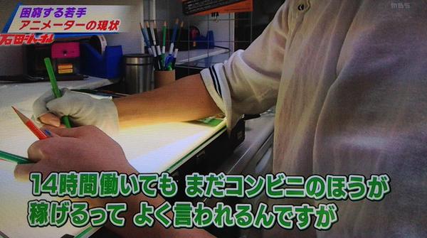 일본 애니메이터들의 어려운 근로 환경이 또다시 방송 프로그램에 소개